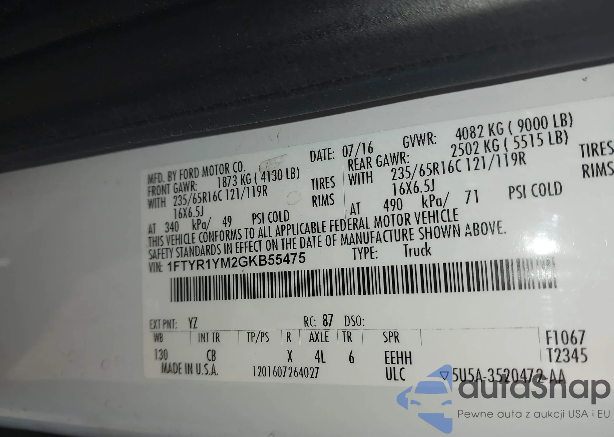 • VIN 1FTYR1YM2GKB55475