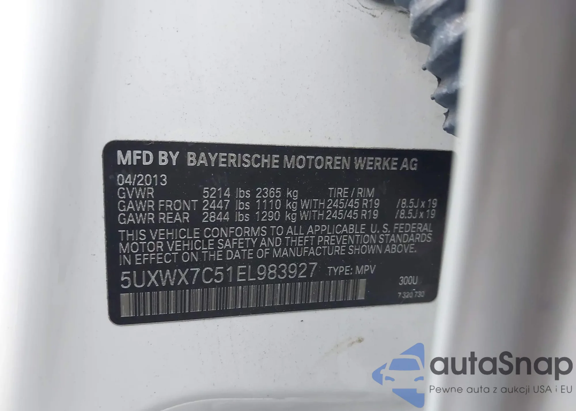 • VIN 5UXWX7C51EL983927