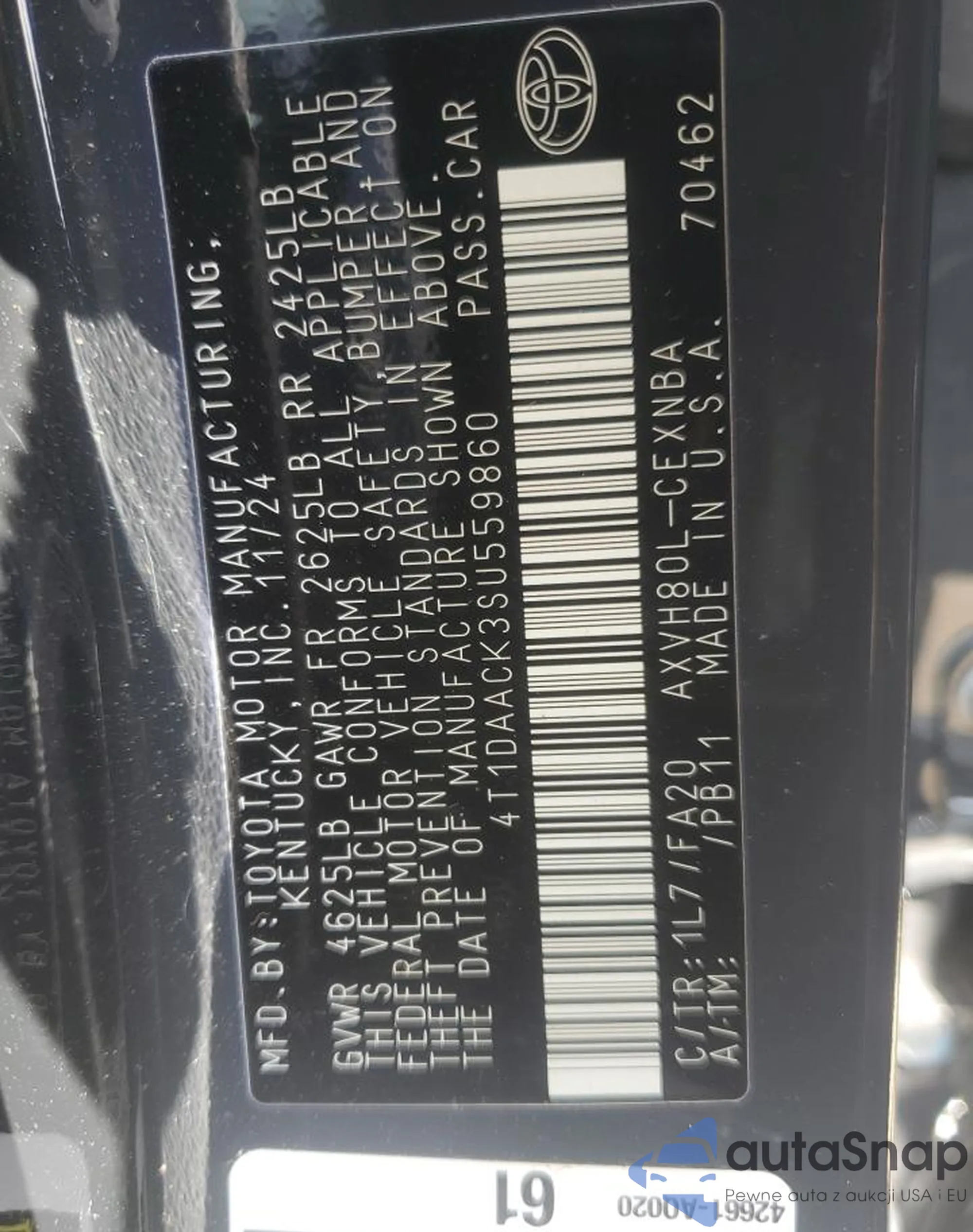 • VIN 4T1DAACK3SU559860