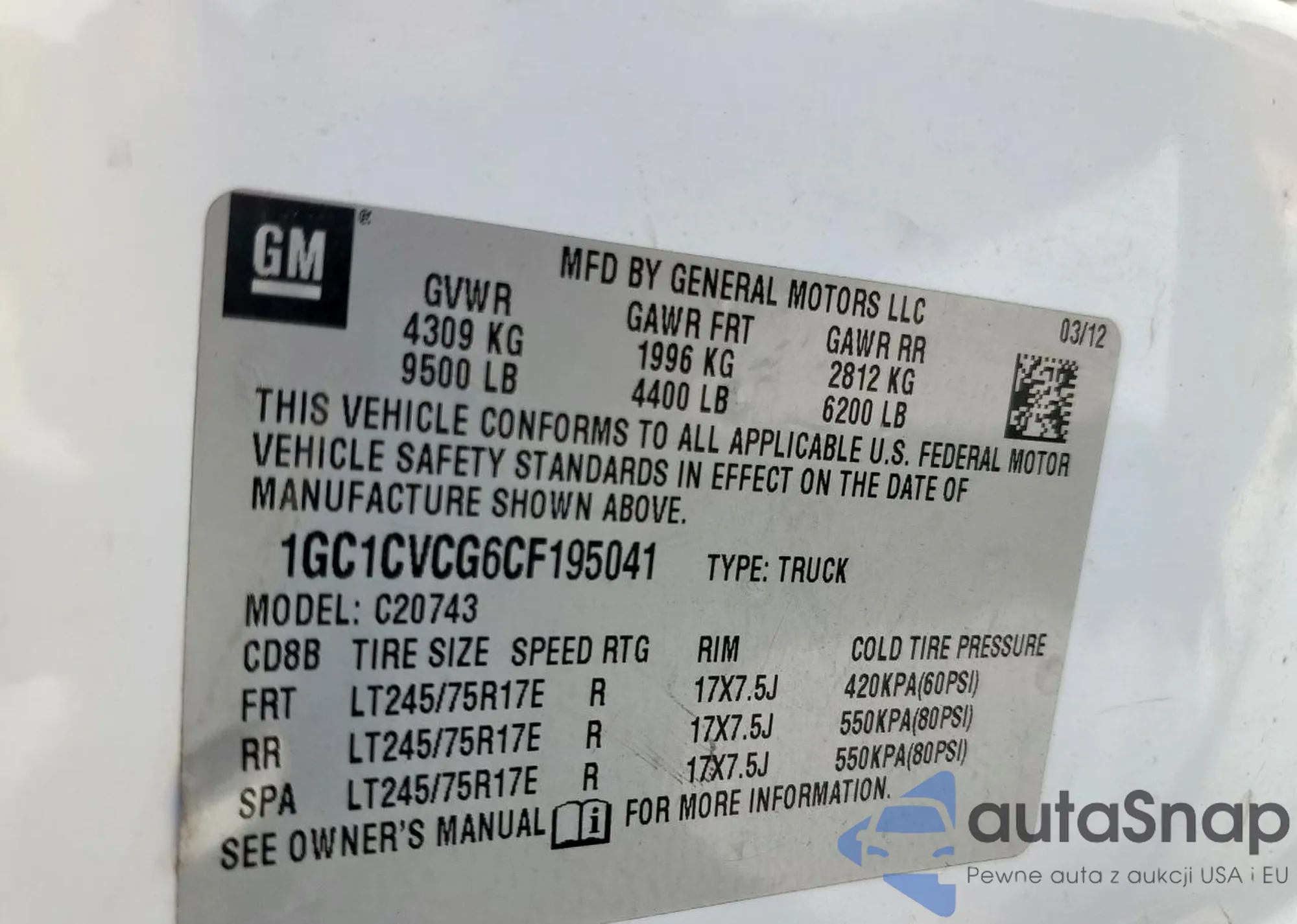 LOT: 69118215 VIN: 1GCRKREA5BZ420780