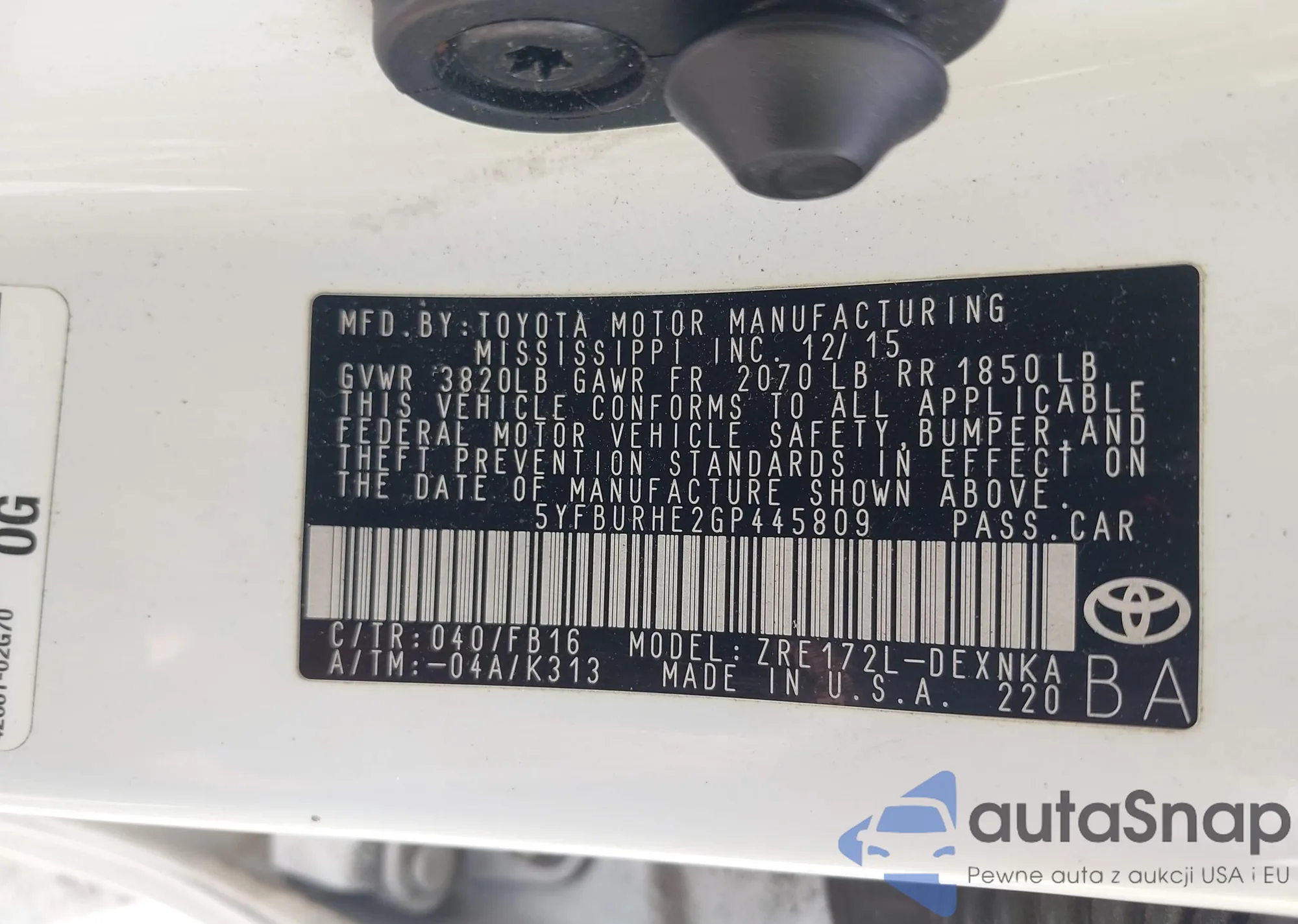 • VIN 5YFBURHE2GP445809