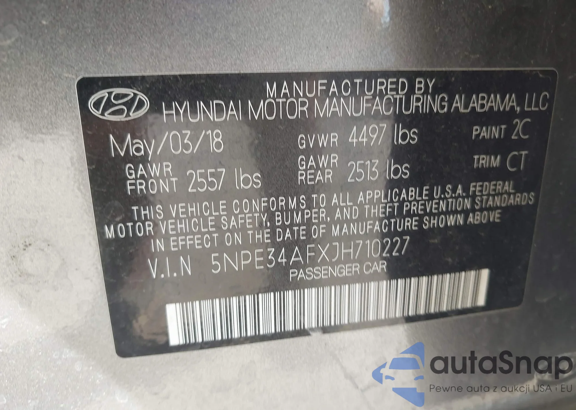 • VIN 5NPE34AFXJH710227