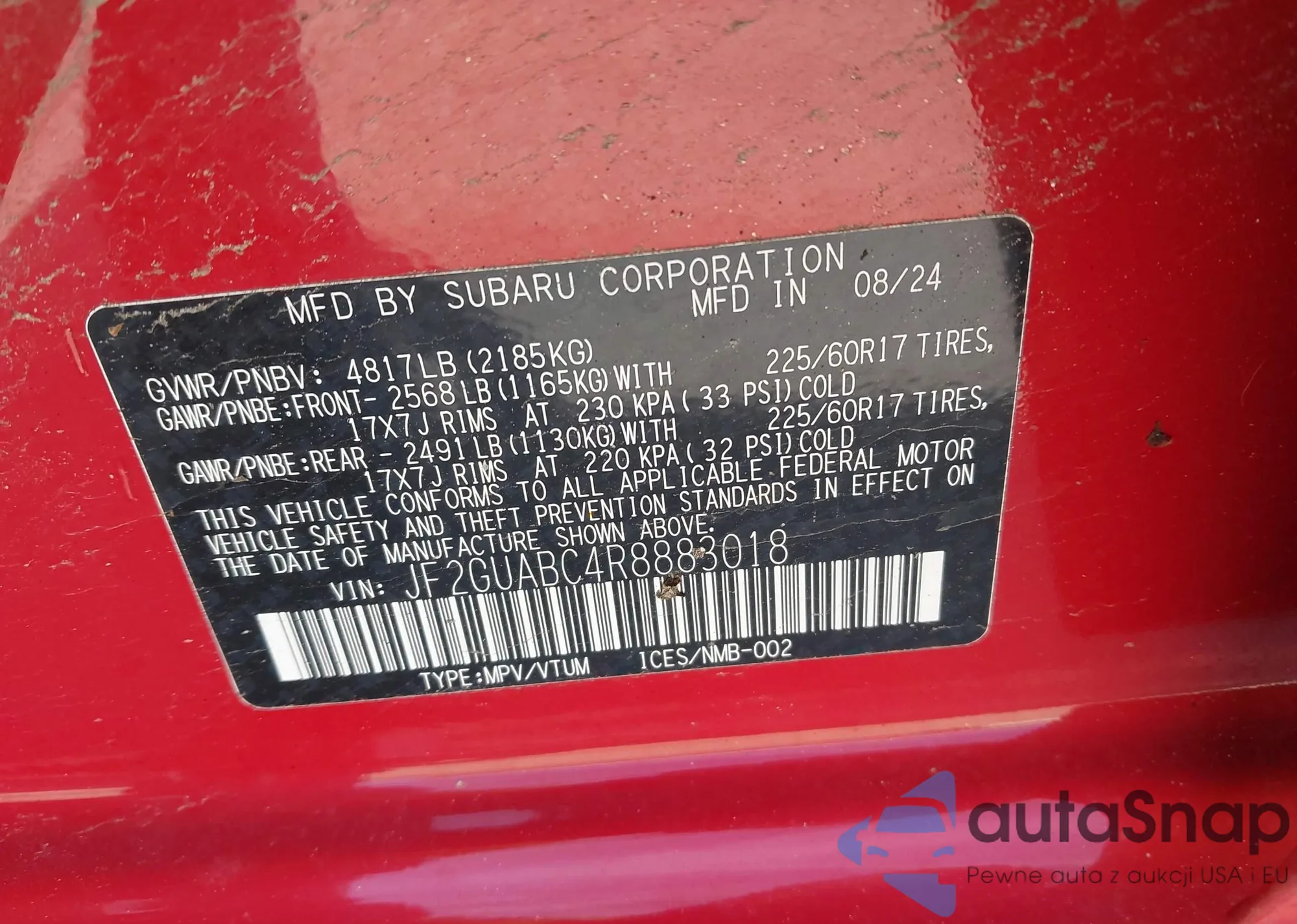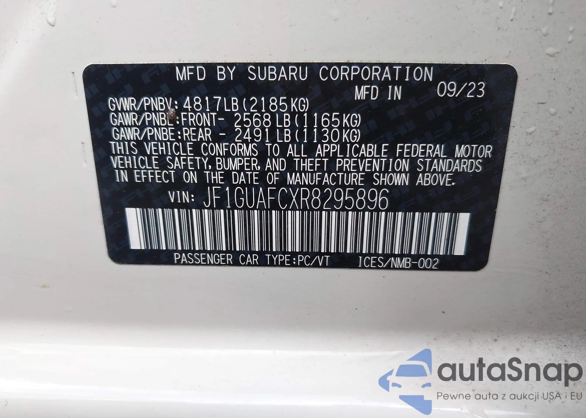 LOT: 42928102 VIN: JF1GUAFCXR8295896
