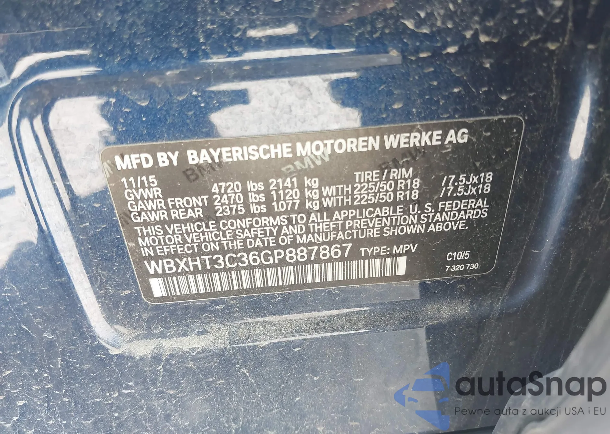 LOT: 42756261 VIN: WBXHT3C36GP887867