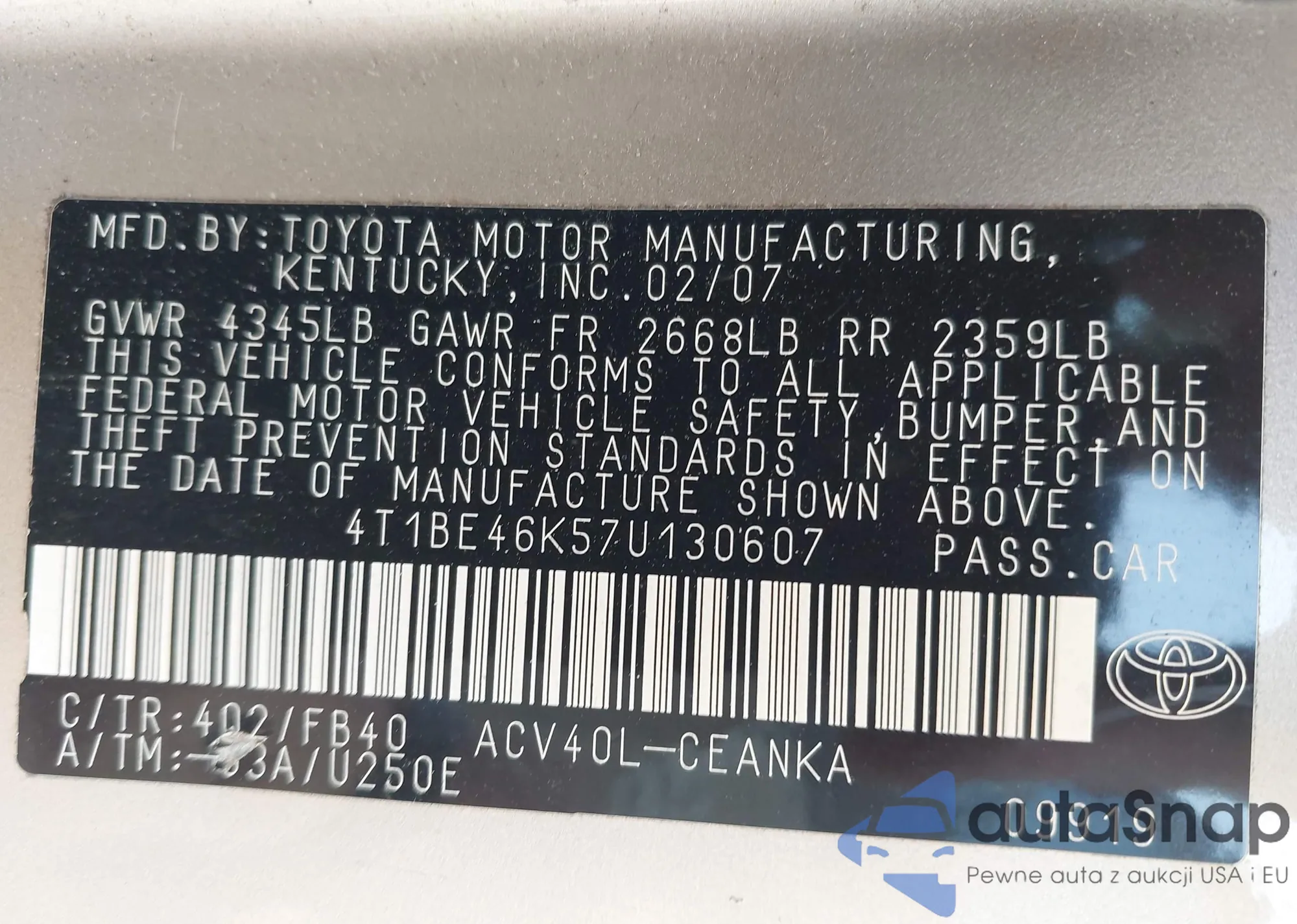 • VIN 4T1BE46K57U130607