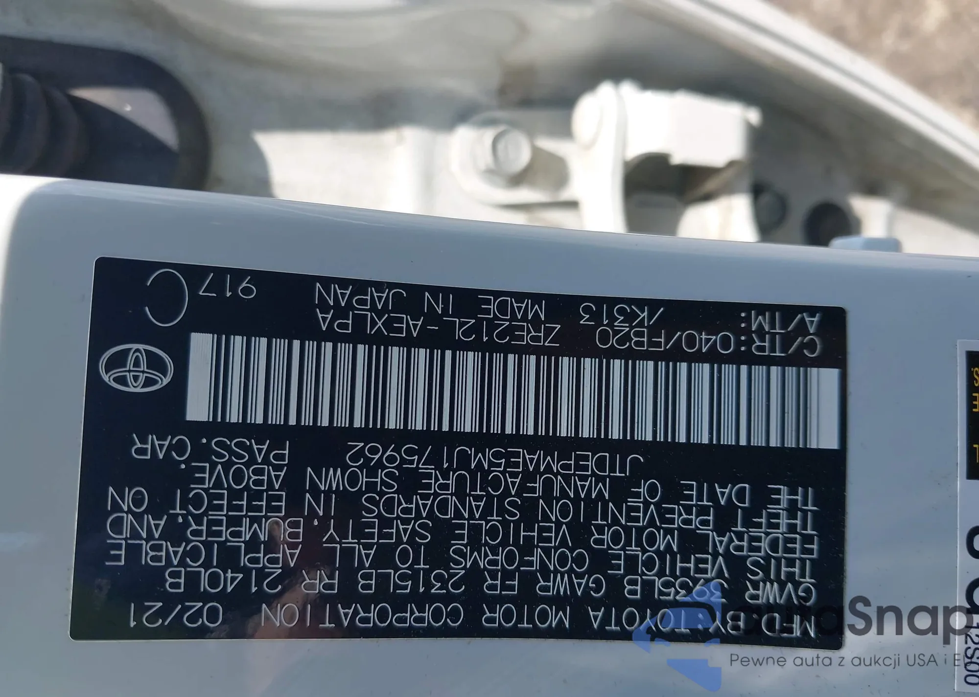 LOT: 42456455 VIN: JTDEPMAE5MJ175962