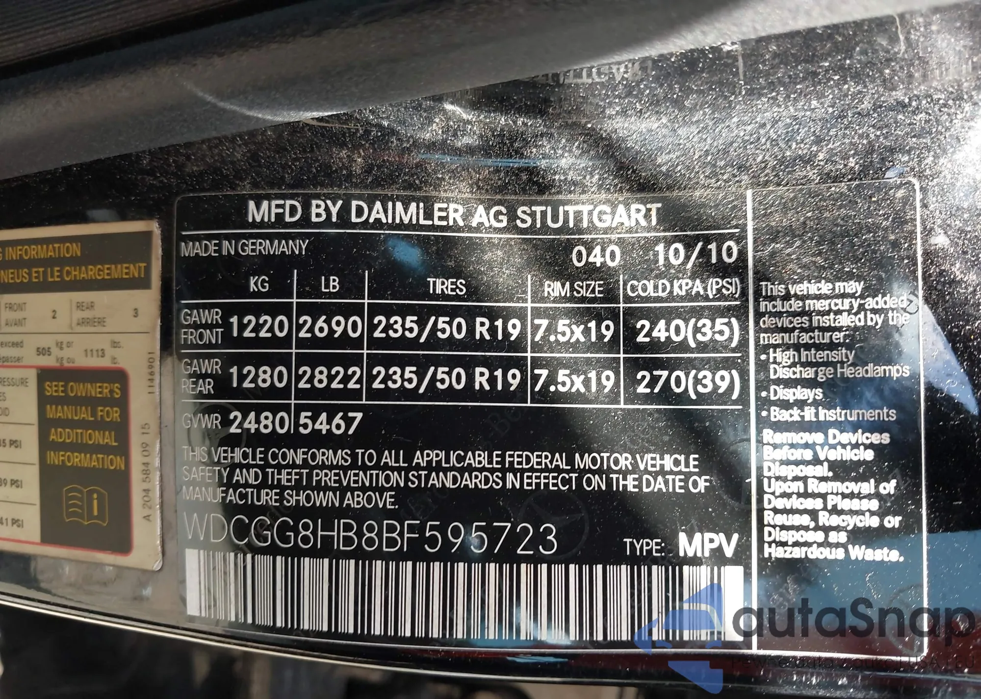 • VIN WDCGG8HB8BF595723