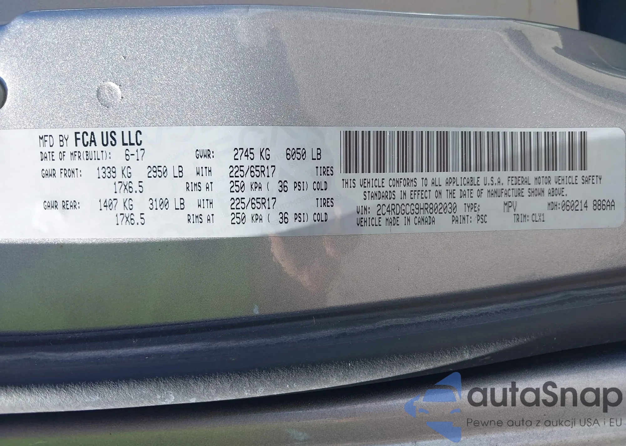 • VIN 2C4RDGCG9HR802030
