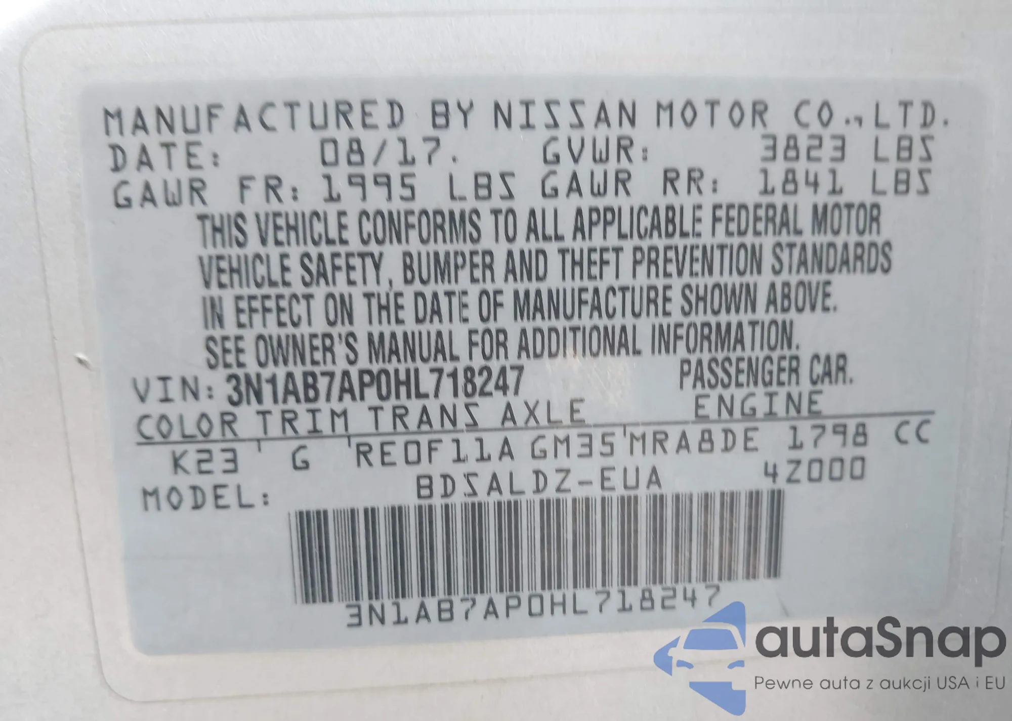 • VIN 3N1AB7AP0HL718247