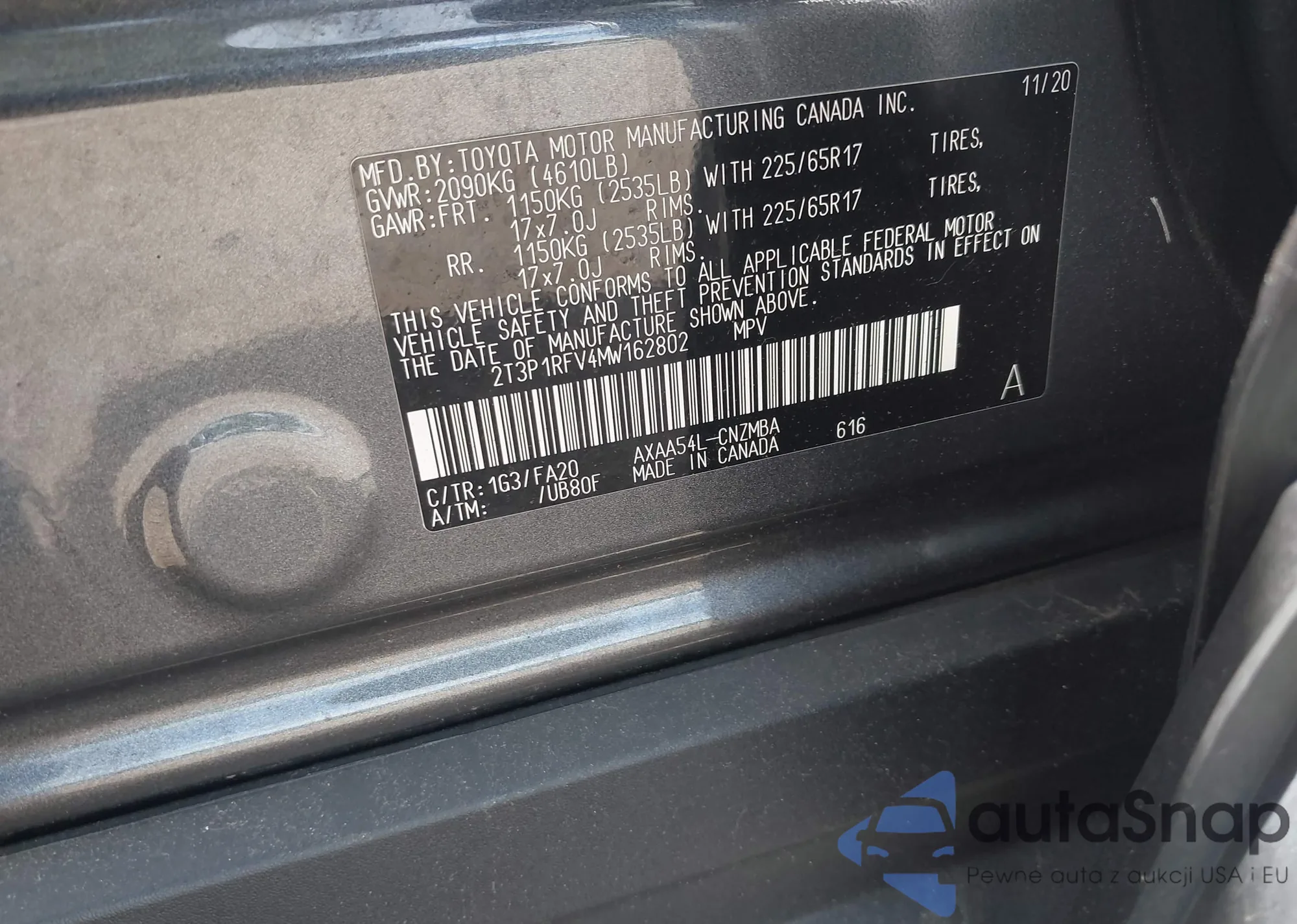 LOT: 42608625 VIN: 2T3P1RFV4MW162802