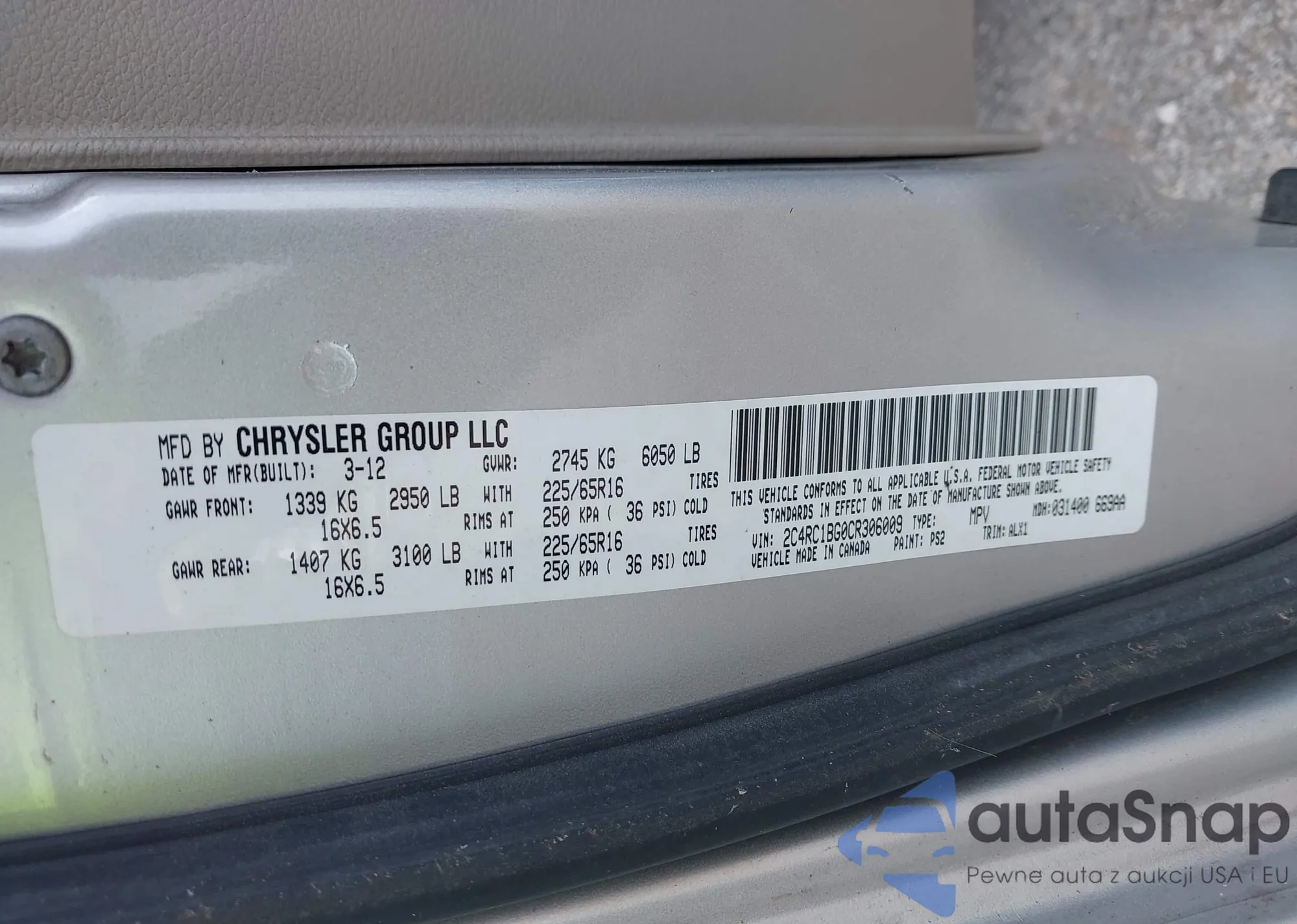 LOT: 42688268 VIN: 2C4RC1BG0CR306009