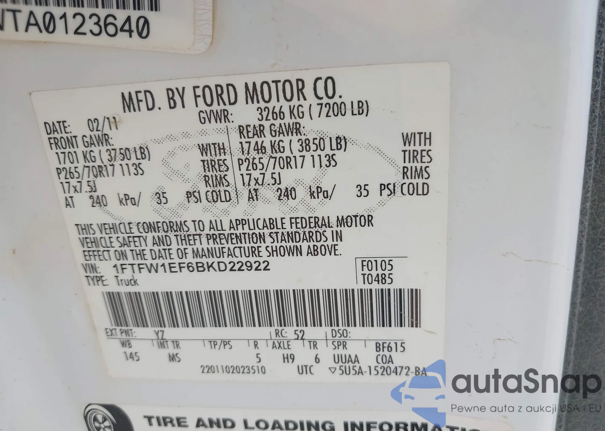 • VIN 1FMEE5JR1NLA52465