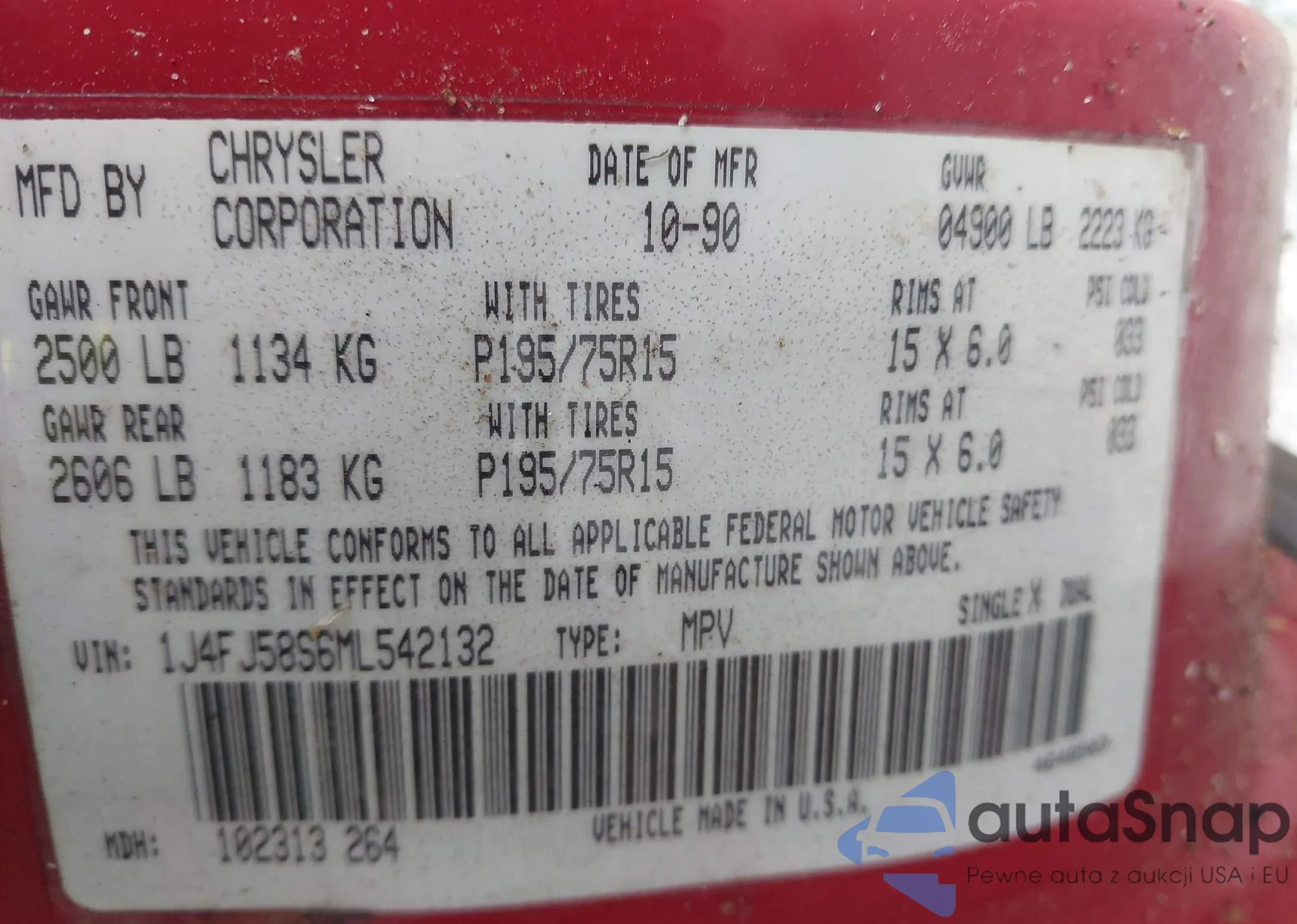 LOT: 42531916 VIN: 1FAFP58S7XA277800
