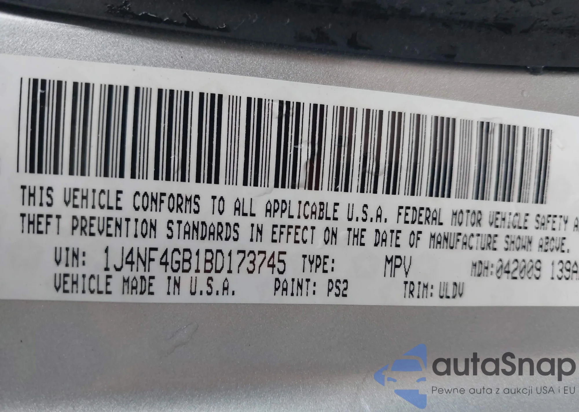 • VIN 1J4NF4GB1BD173745