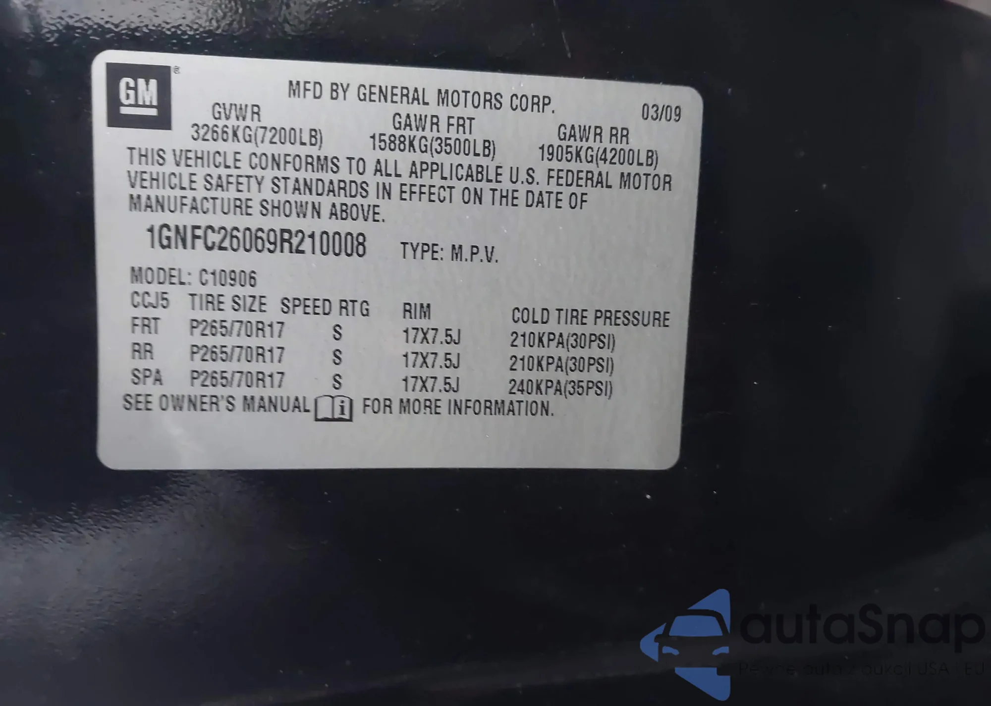 LOT: 43004922 VIN: 1GNFC26069R210008