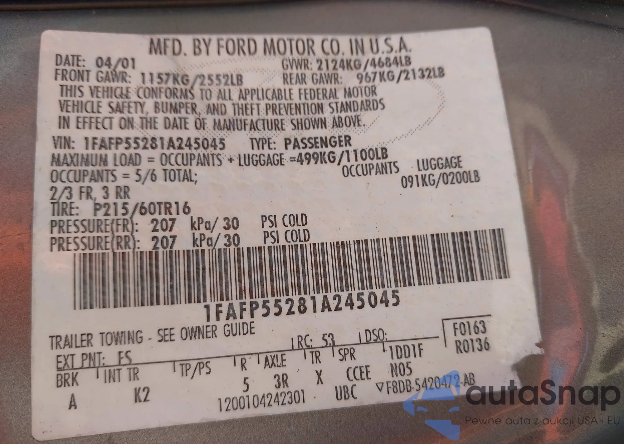 • VIN 5TFNU5F12EX032292