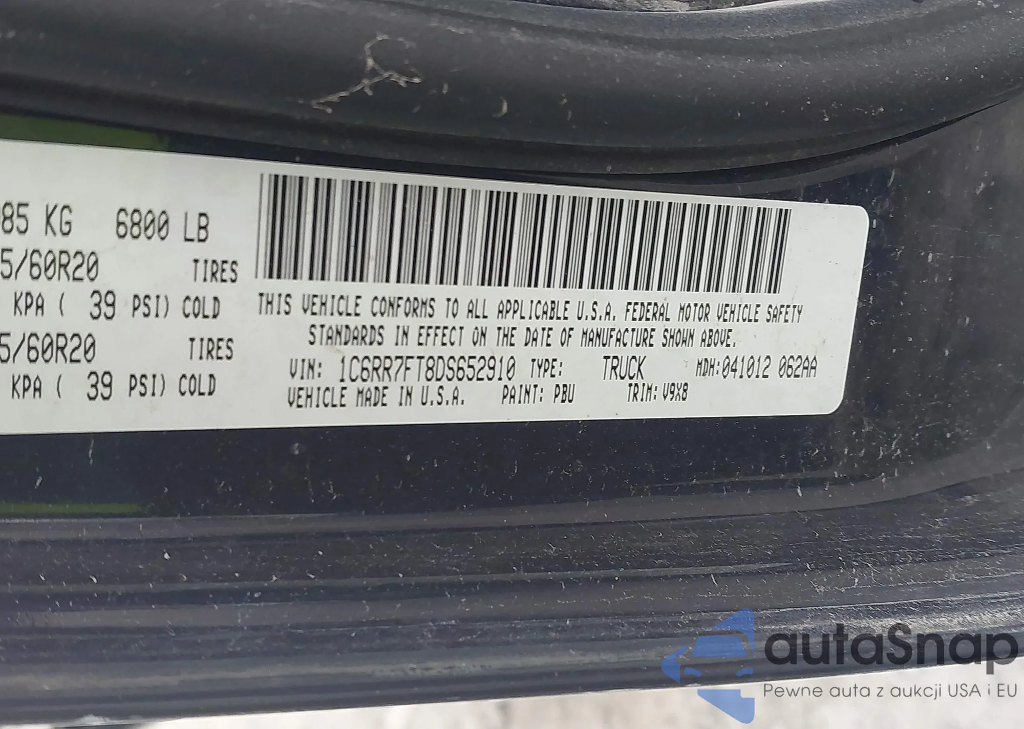 • VIN 1C6RR7FT8DS652910