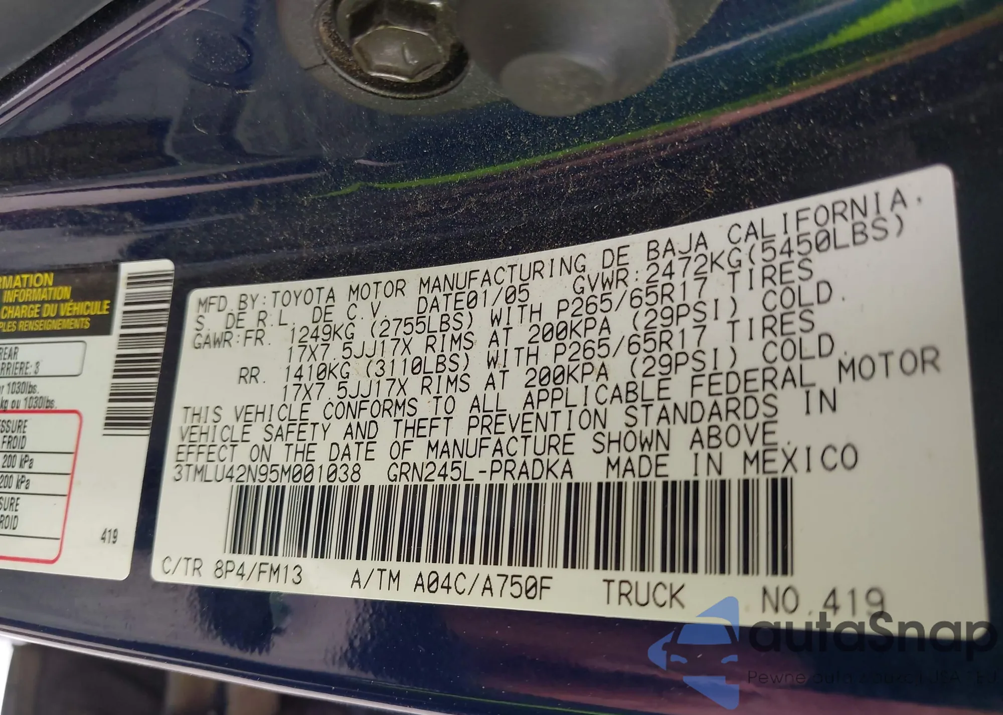 • VIN 3TMLU42N95M001038
