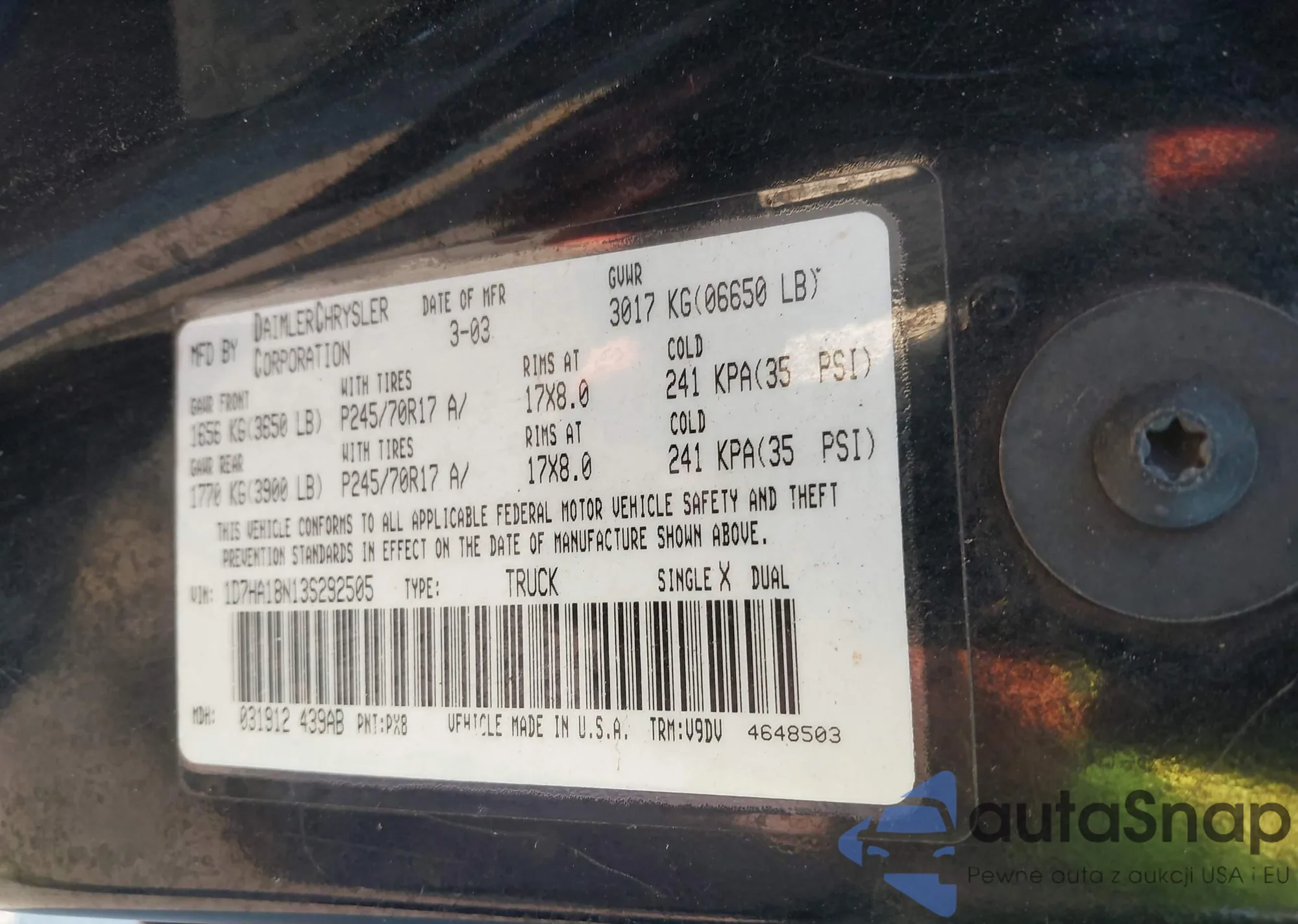 LOT: 42956739 VIN: 1D7HA18N13S292505