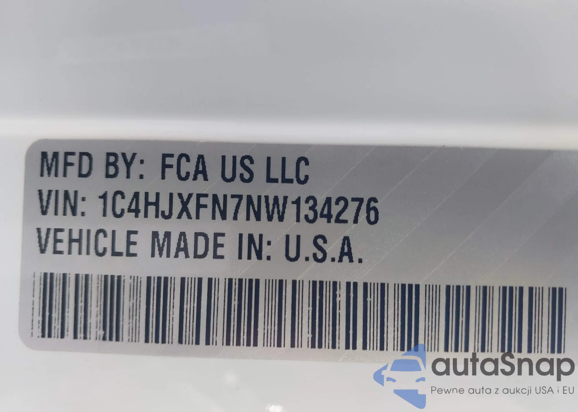 • VIN 1C4HJXFN7NW134276