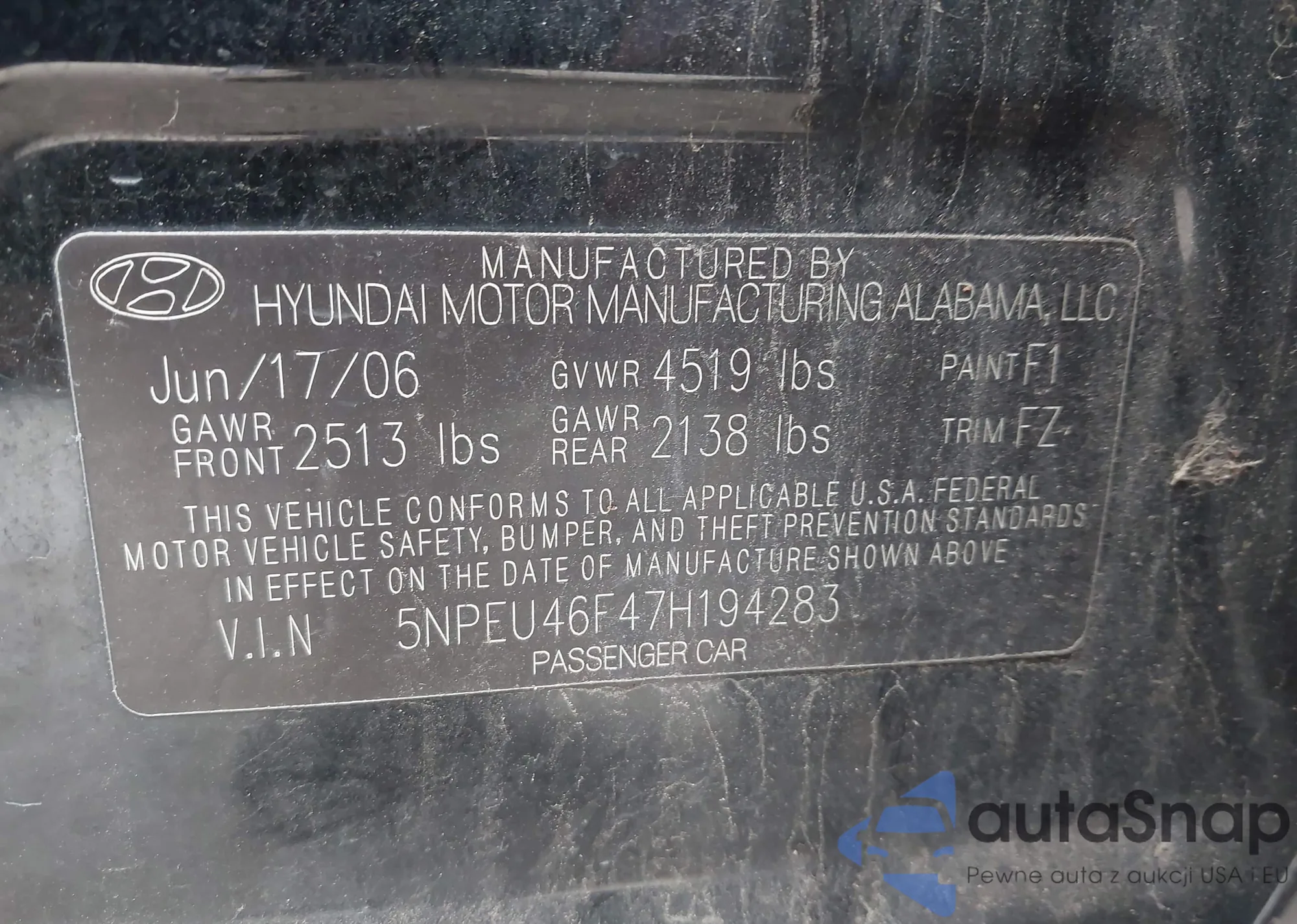 • VIN 5NPEU46F47H194283
