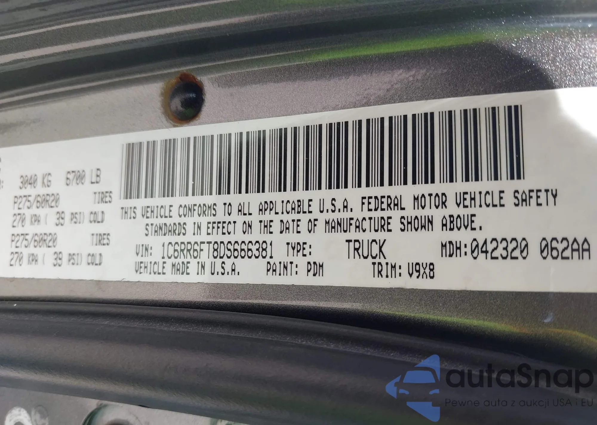 • VIN 1C6RR6FT8DS666381
