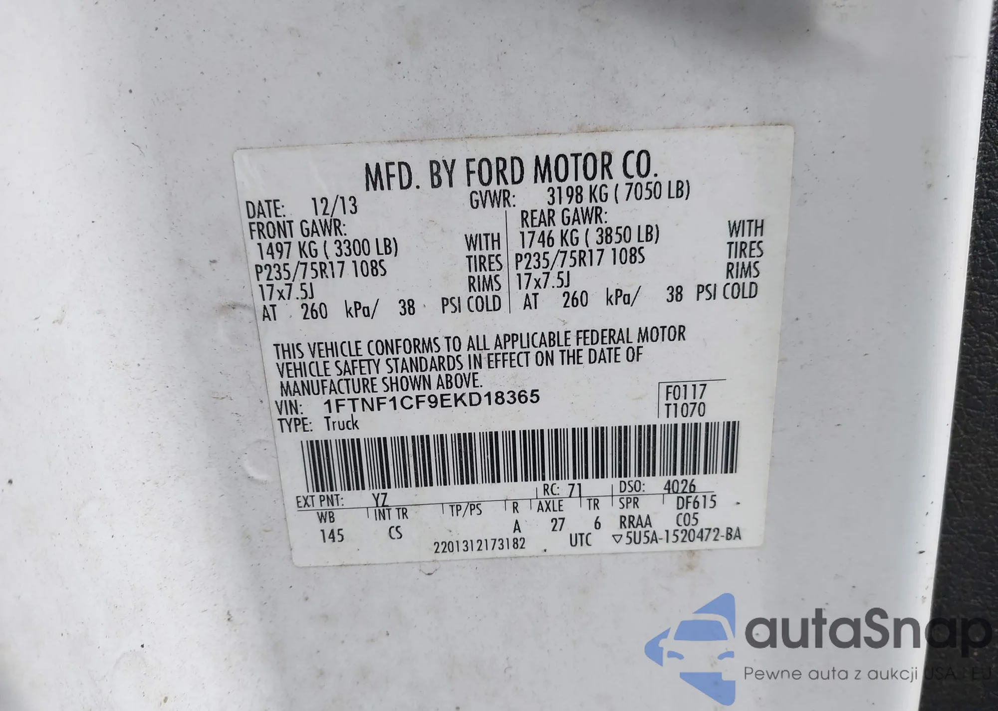 LOT: 42967225 VIN: 1FTNF1CF9EKD18365