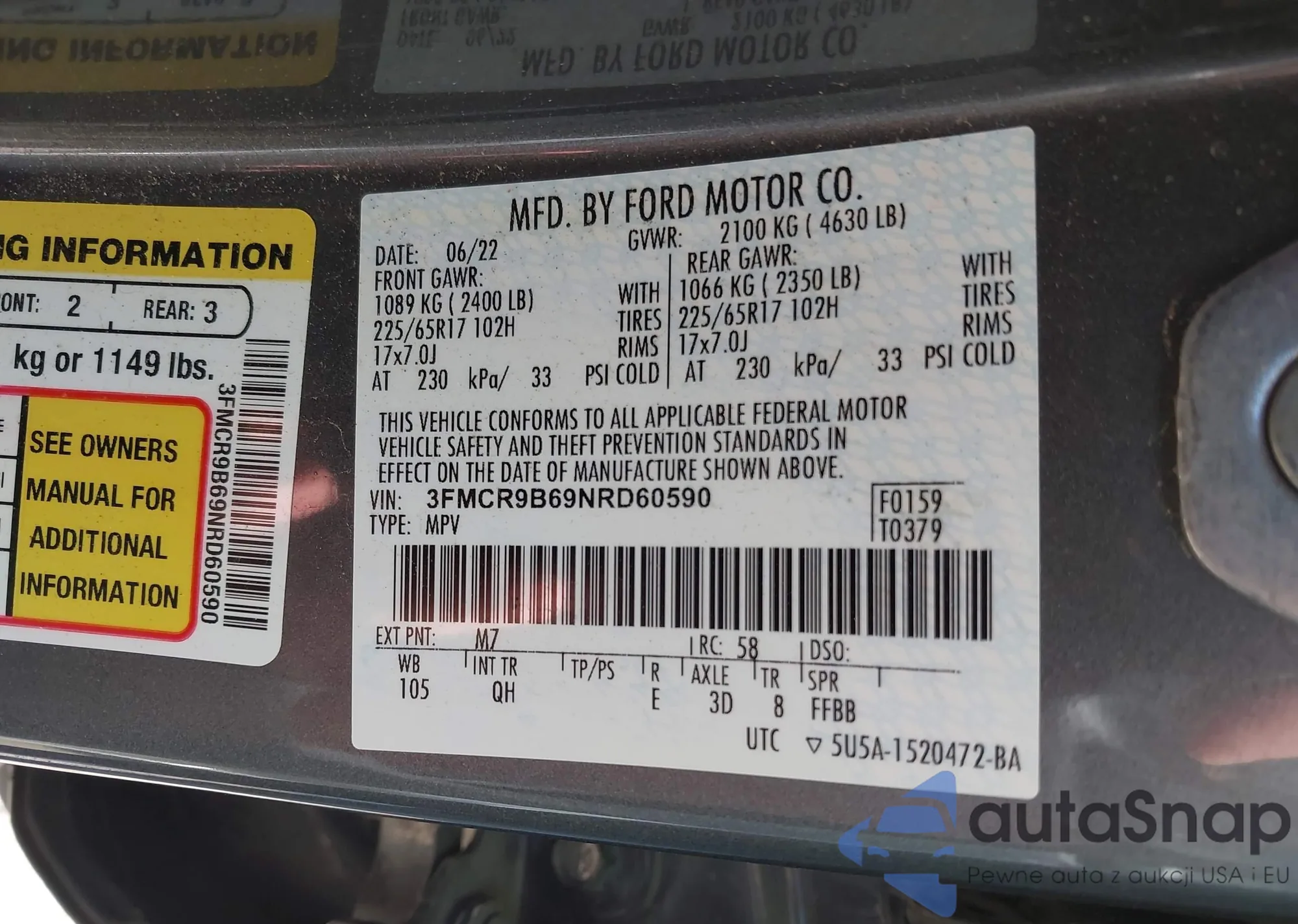 • VIN 3FMCR9B69NRD60590