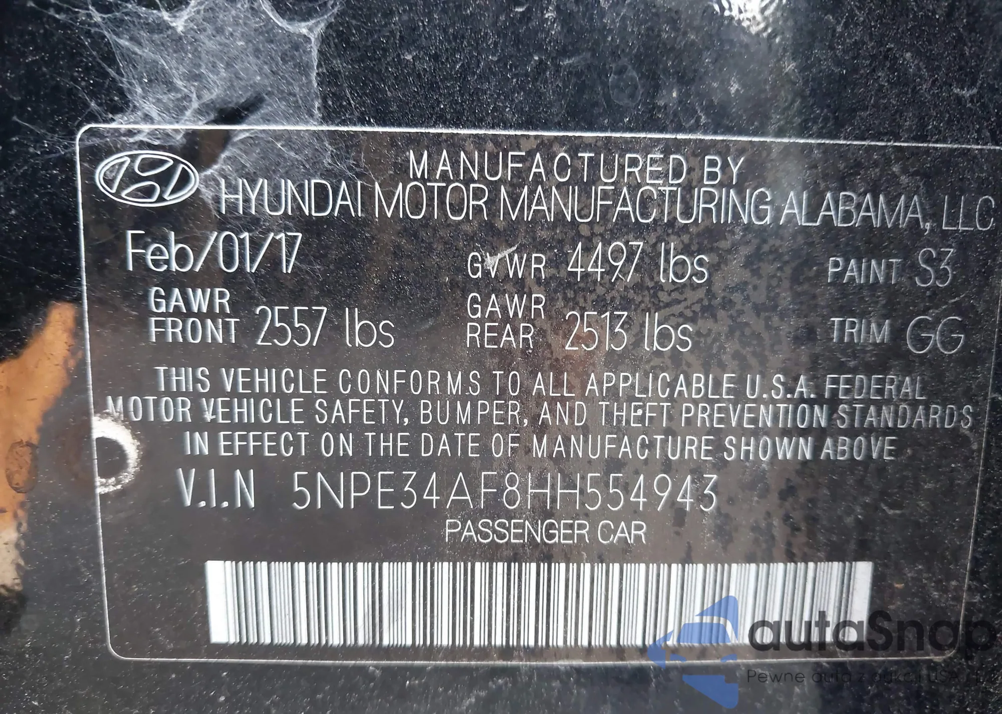 • VIN 5NPE34AF8HH554943