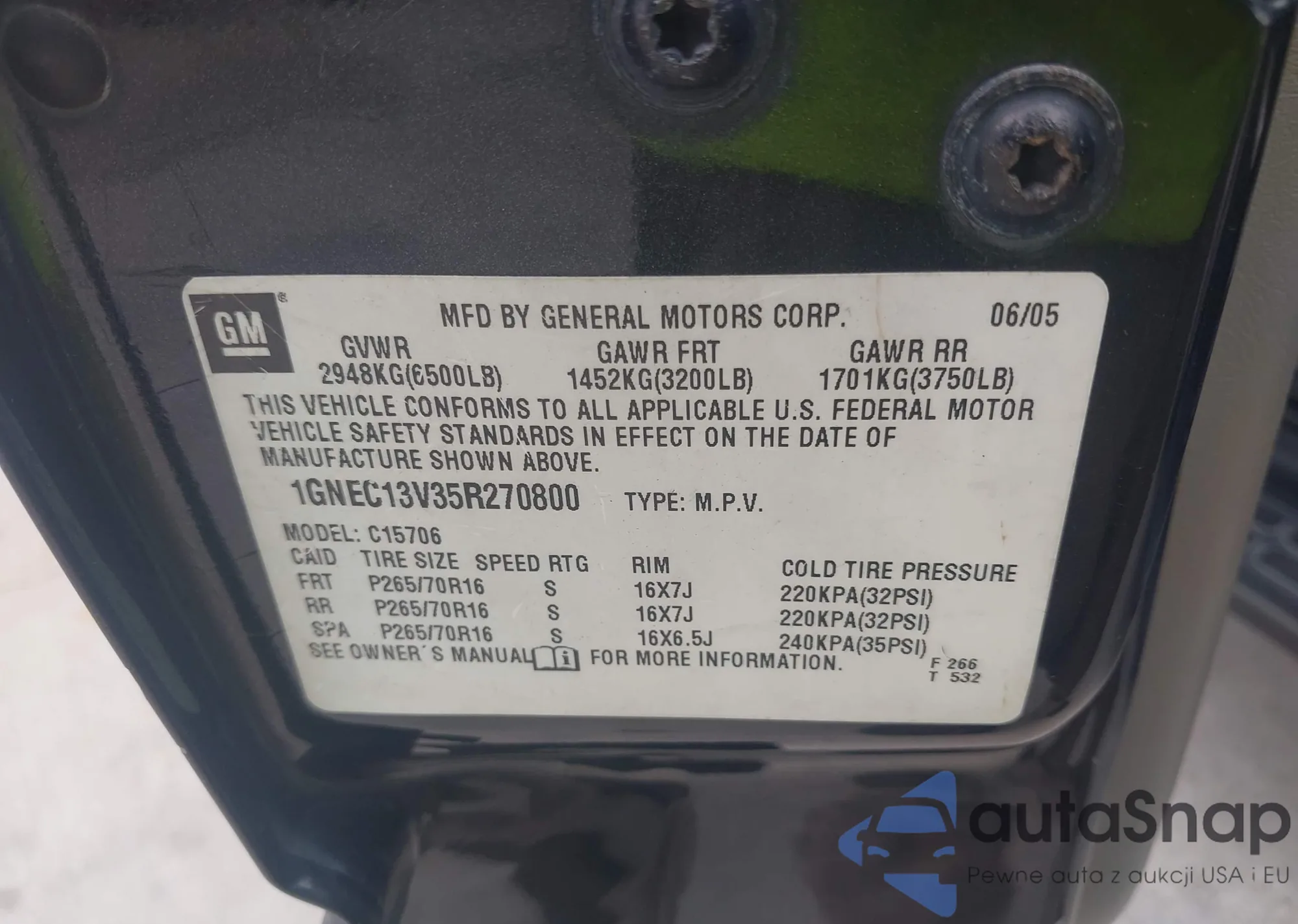 LOT: 42993059 VIN: 1GNEC13V35R270800