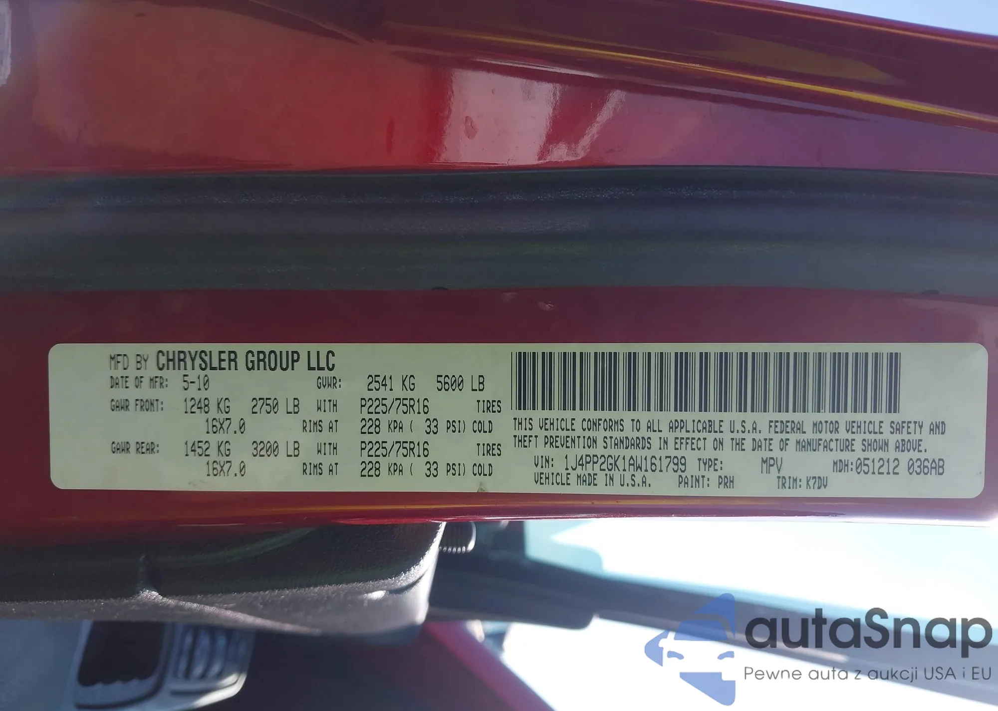 • VIN 1J4PP2GK1AW161799