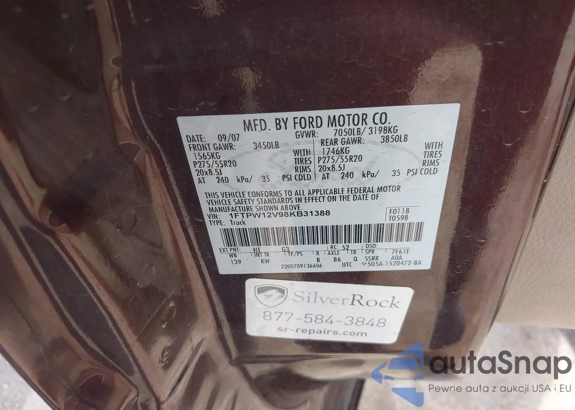 • VIN 1FTPW12V98KB31388