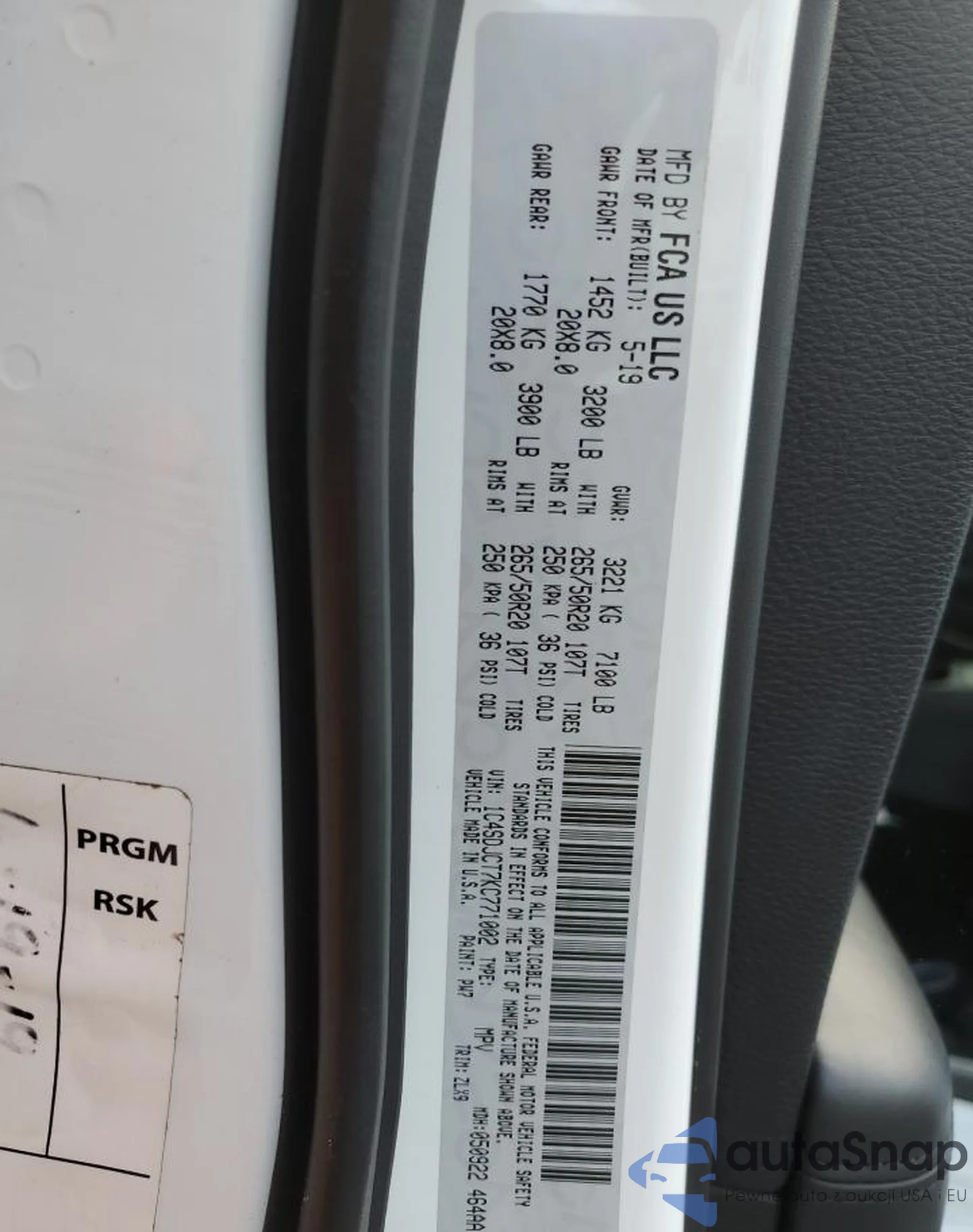• VIN 1C4SDJCT7KC771002