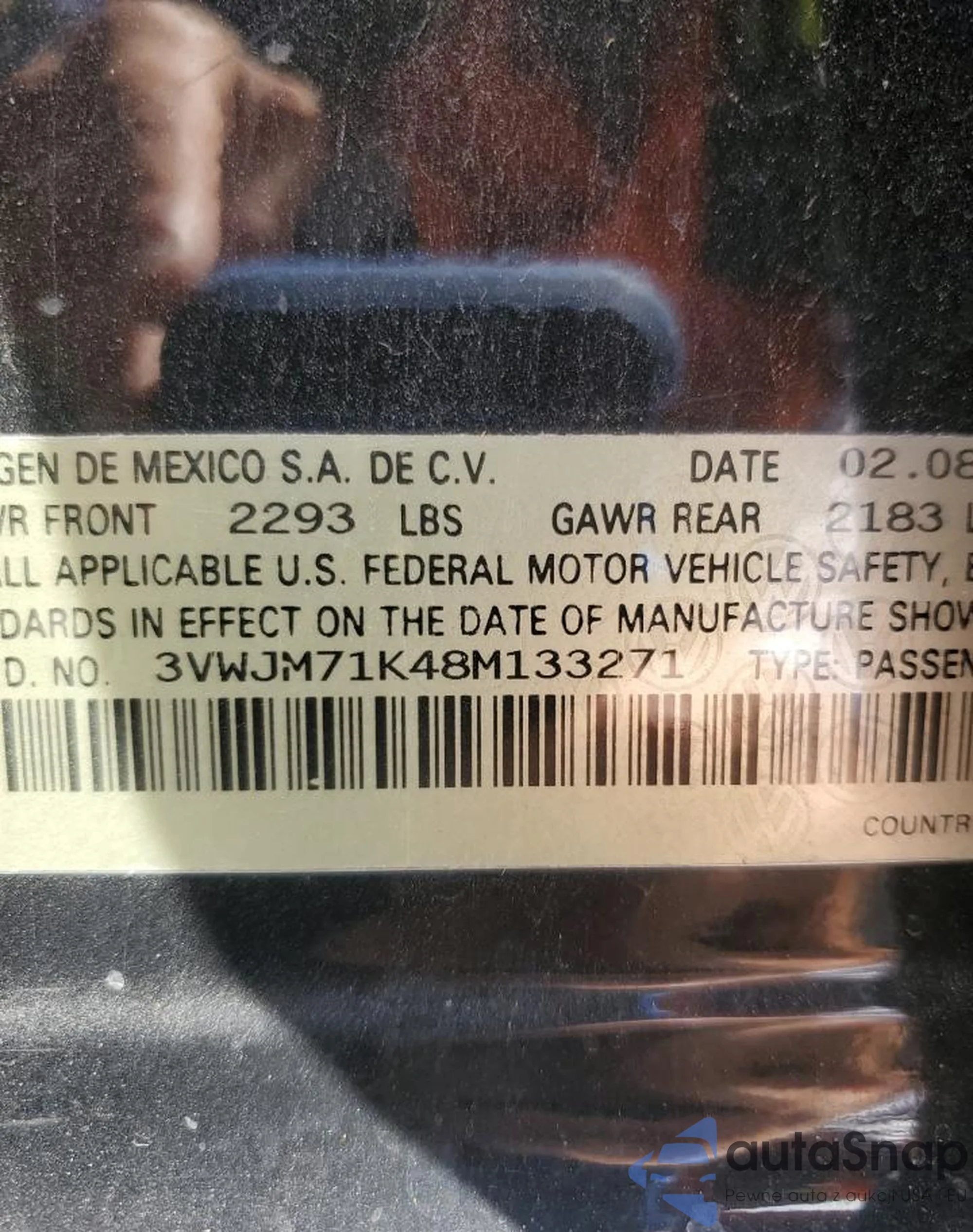 • VIN 3VWSF31Y86M323258