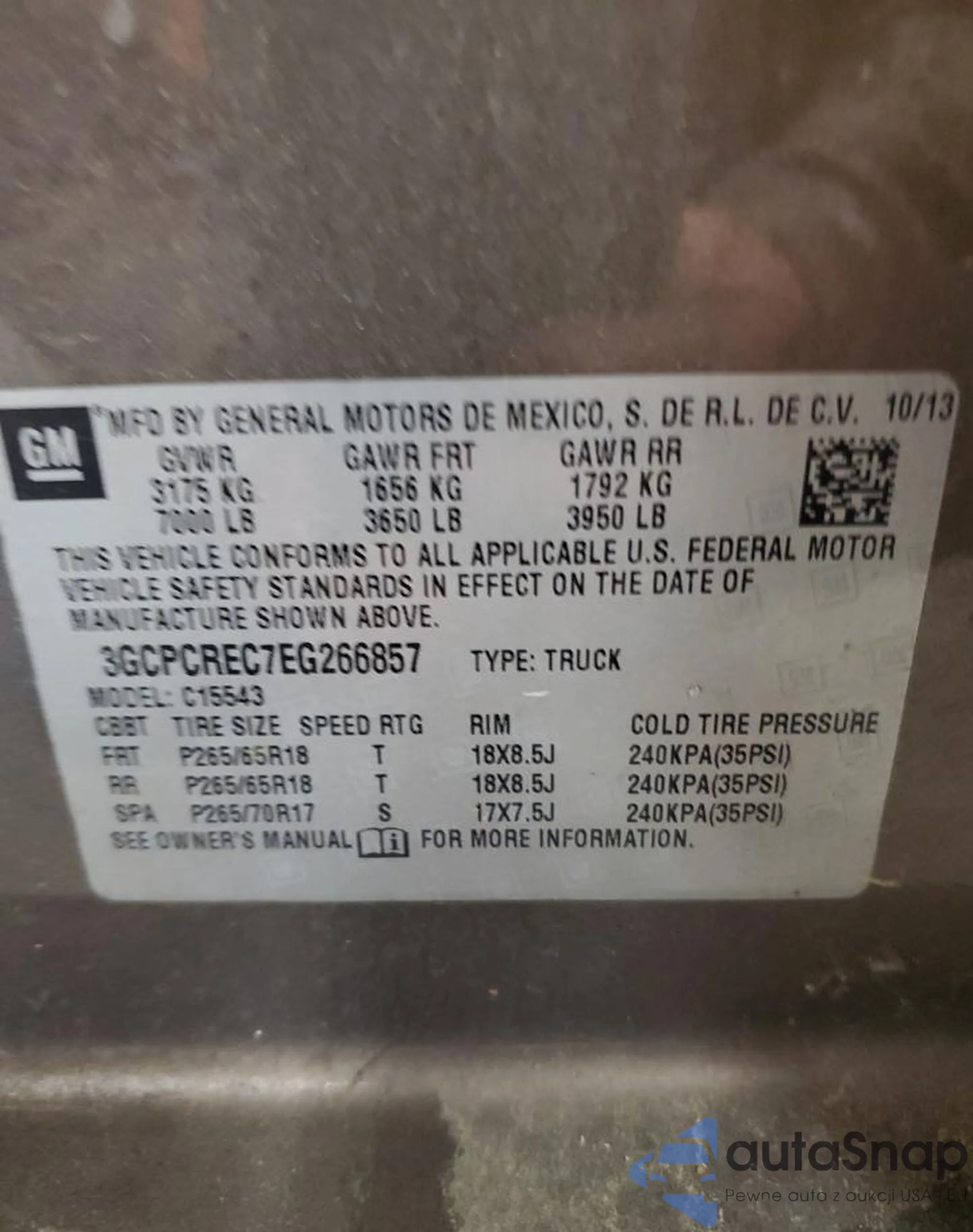 • VIN 3GCPCREC7EG266857