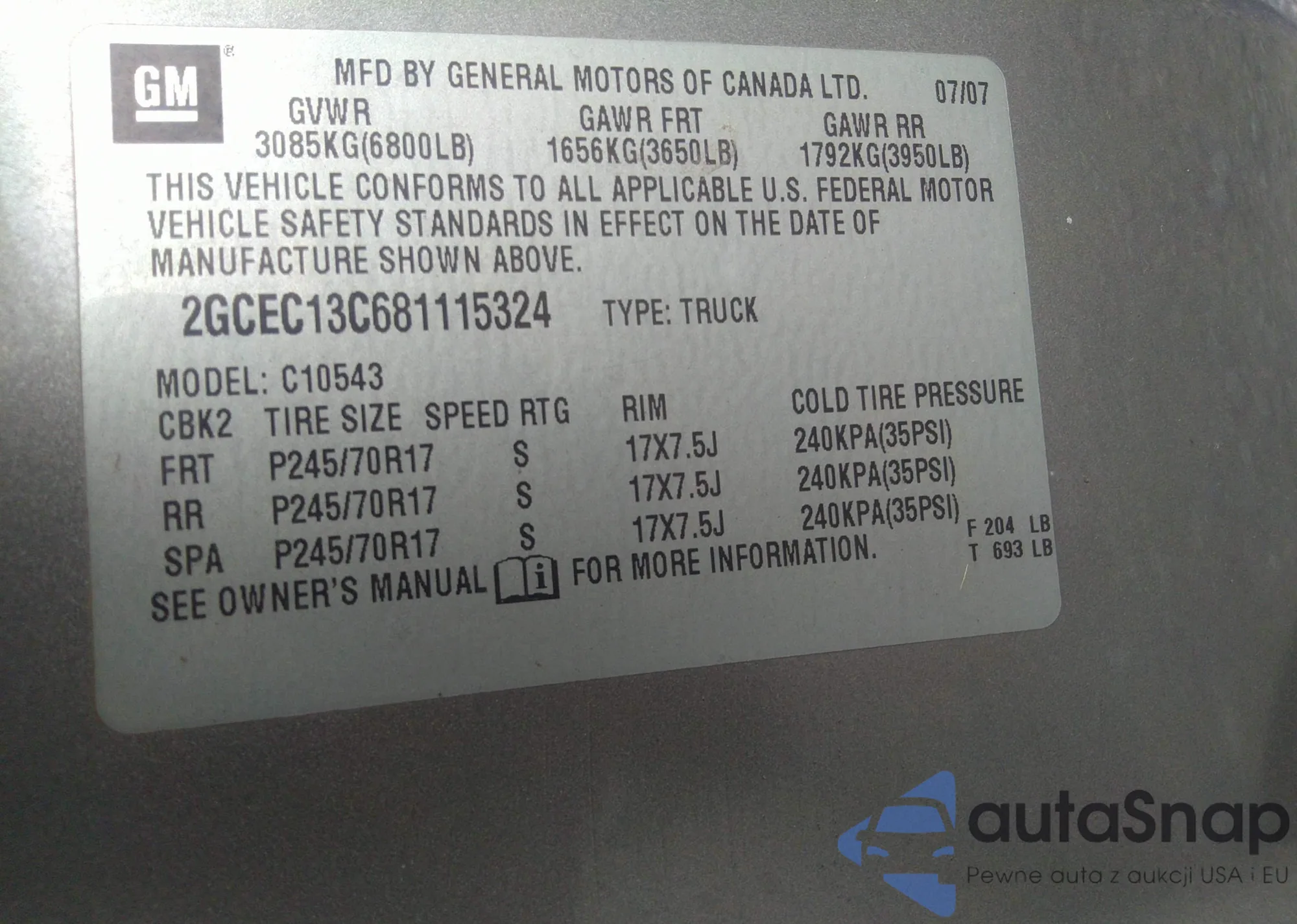 • VIN 2GCEC13C681115324