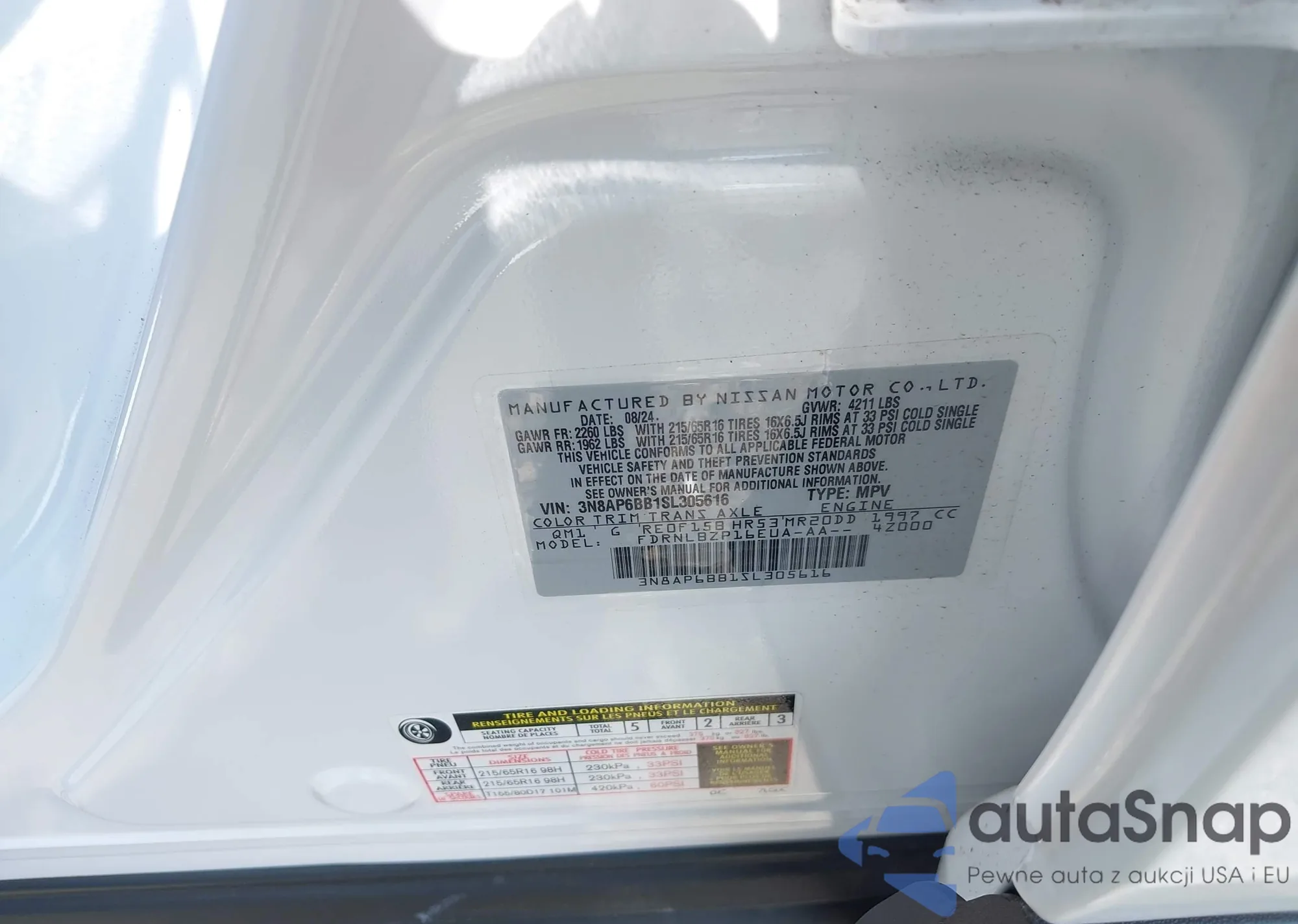 LOT: 42712041 VIN: 3N8AP6BB1SL305616