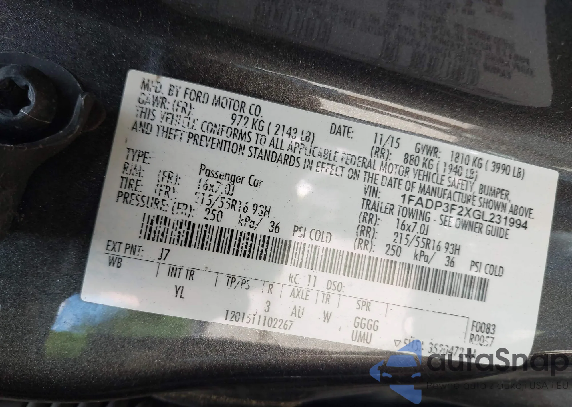 LOT: 42810708 VIN: 1G1BE5SM9J7197078