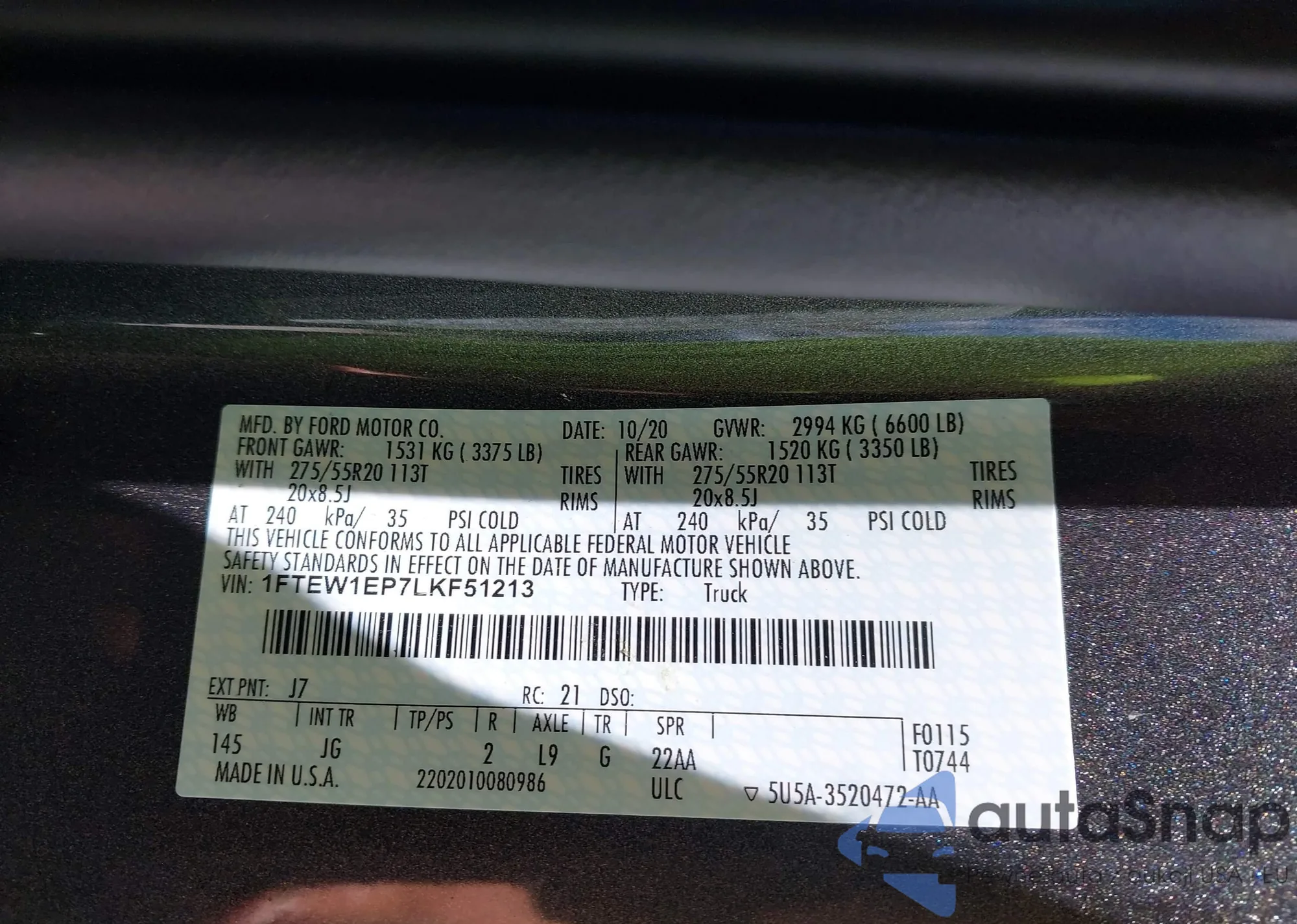 LOT: 42757812 VIN: 1FTEW1EP7LKF51213