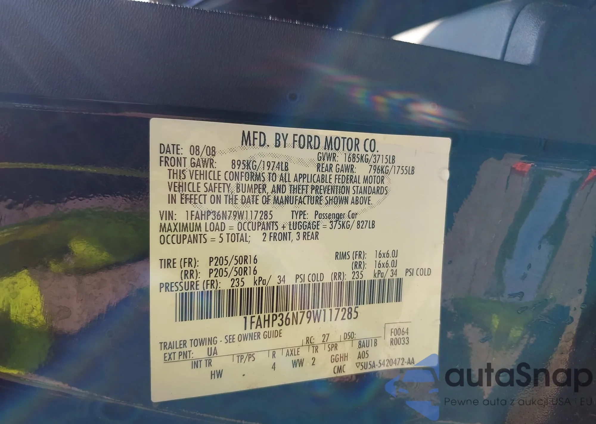 LOT: 42790246 VIN: 1FAHP36N79W117285