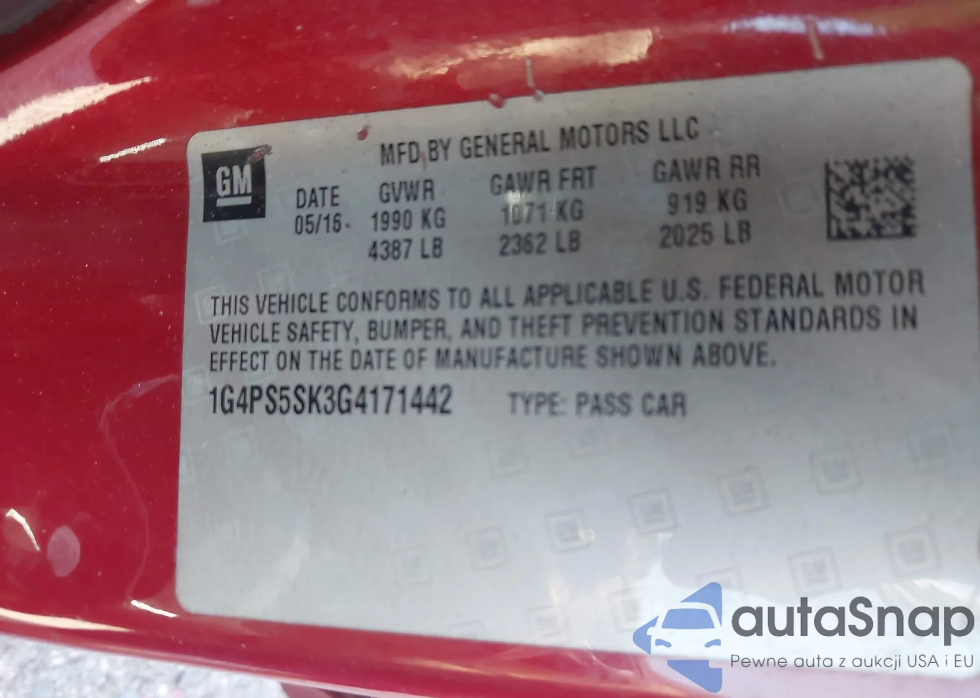 • VIN 3GPKHWRM6RS501330