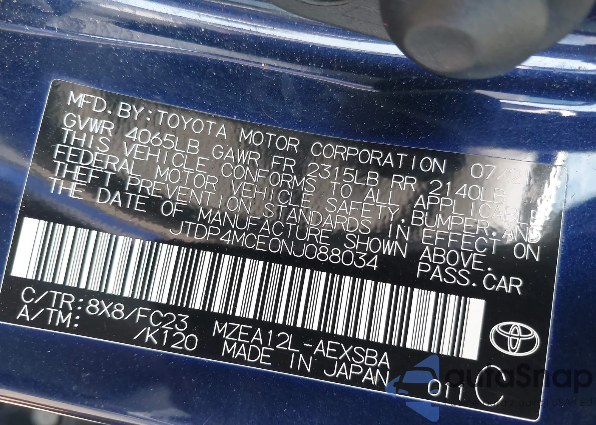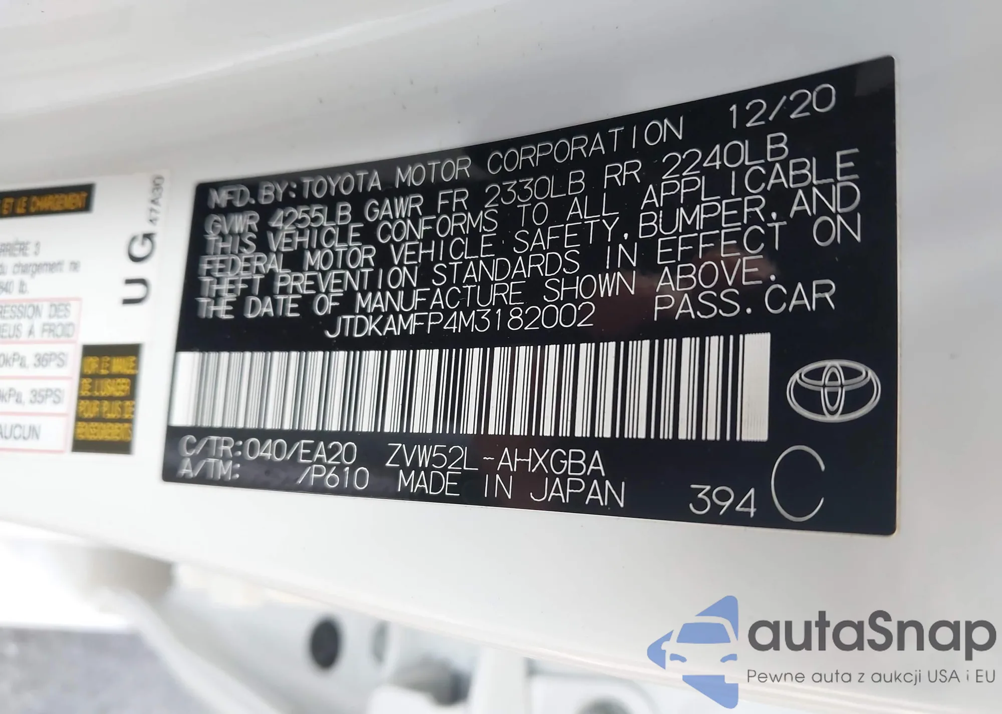 LOT: 42680881 VIN: JTDKAMFP4M3182002