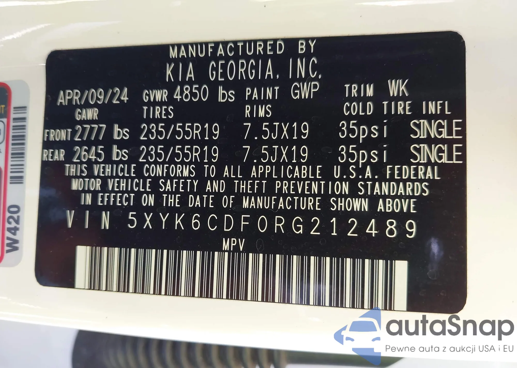 LOT: 42200218 VIN: 5FPYK3F19PB057816