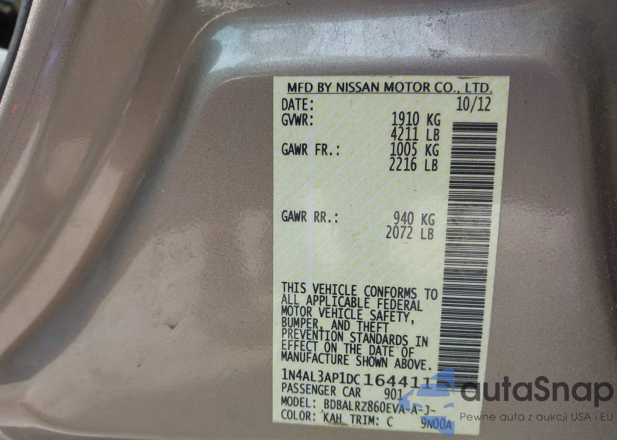 LOT: 42465421 VIN: 1N4BL4CW1RN313233