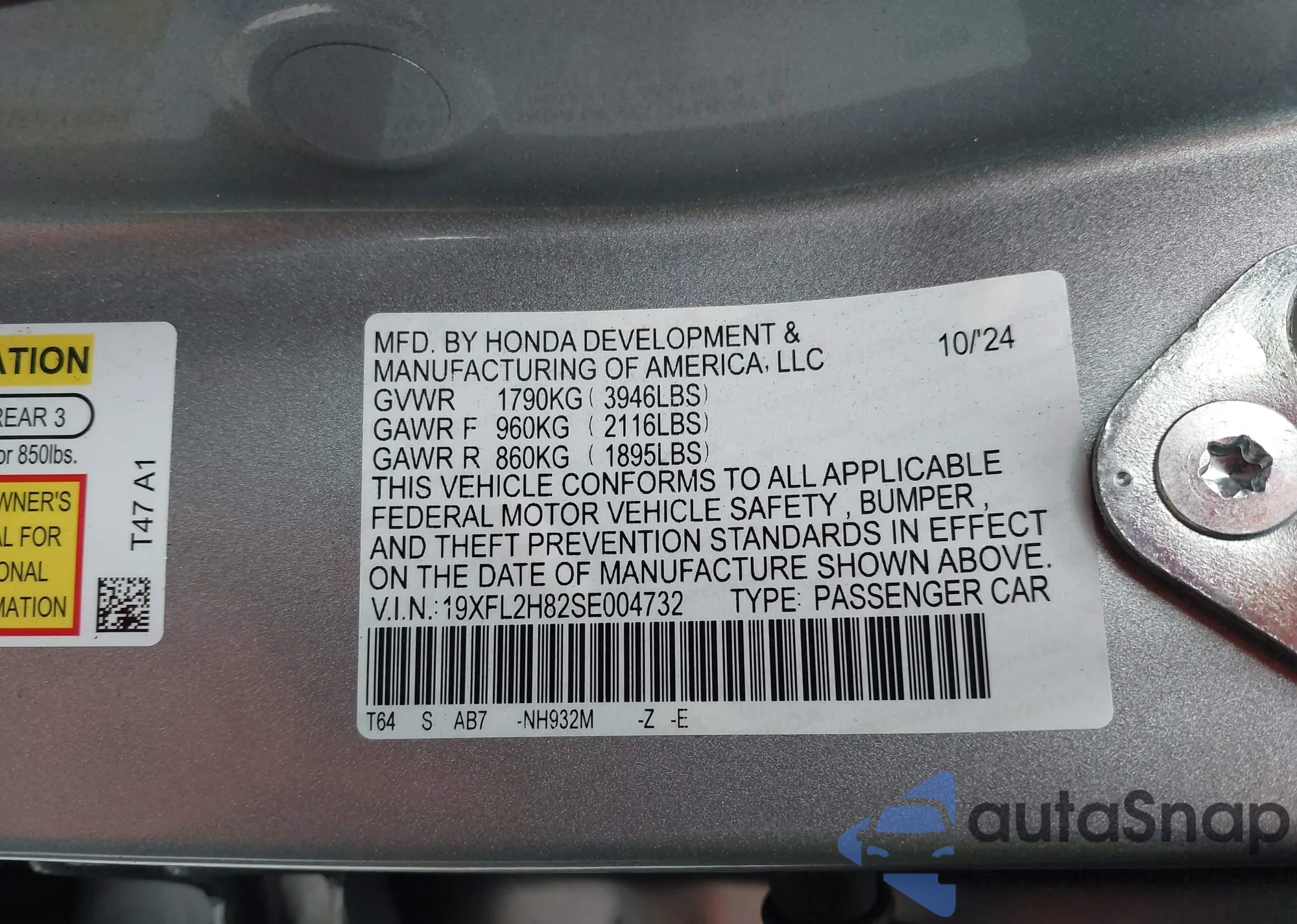 • VIN 19XFL2H82SE004732