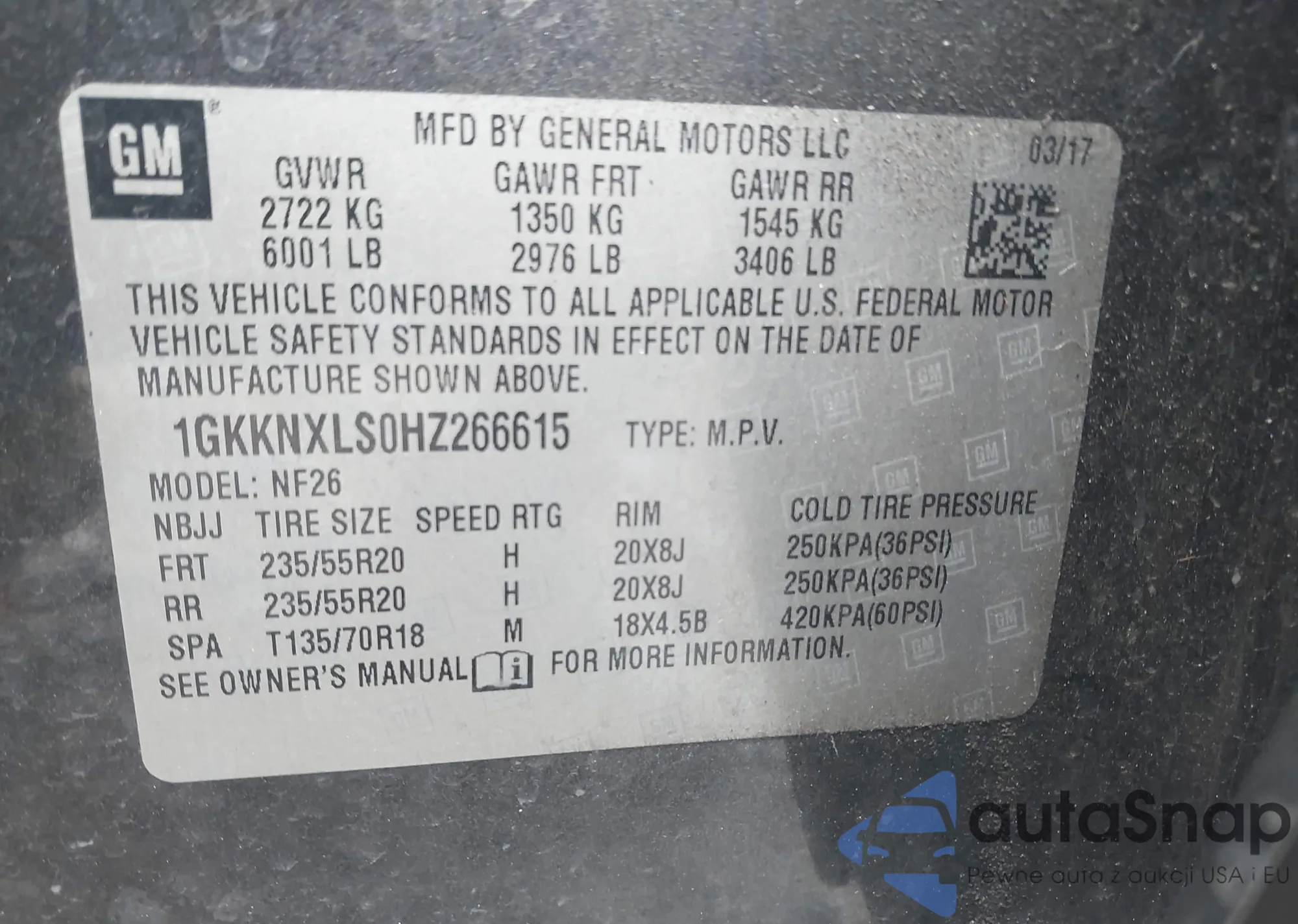 LOT: 42662901 VIN: 1GKKNXLS0HZ266615
