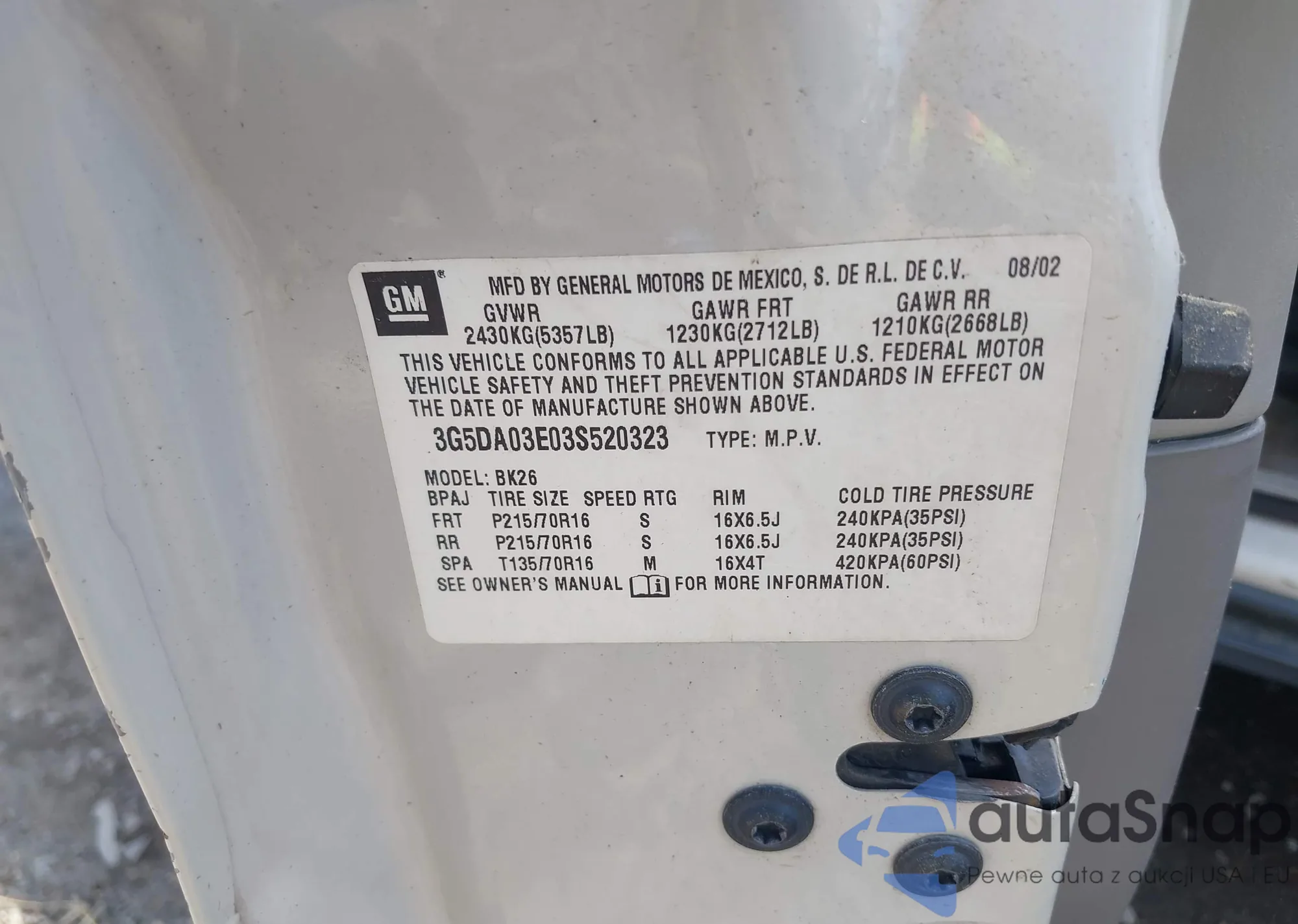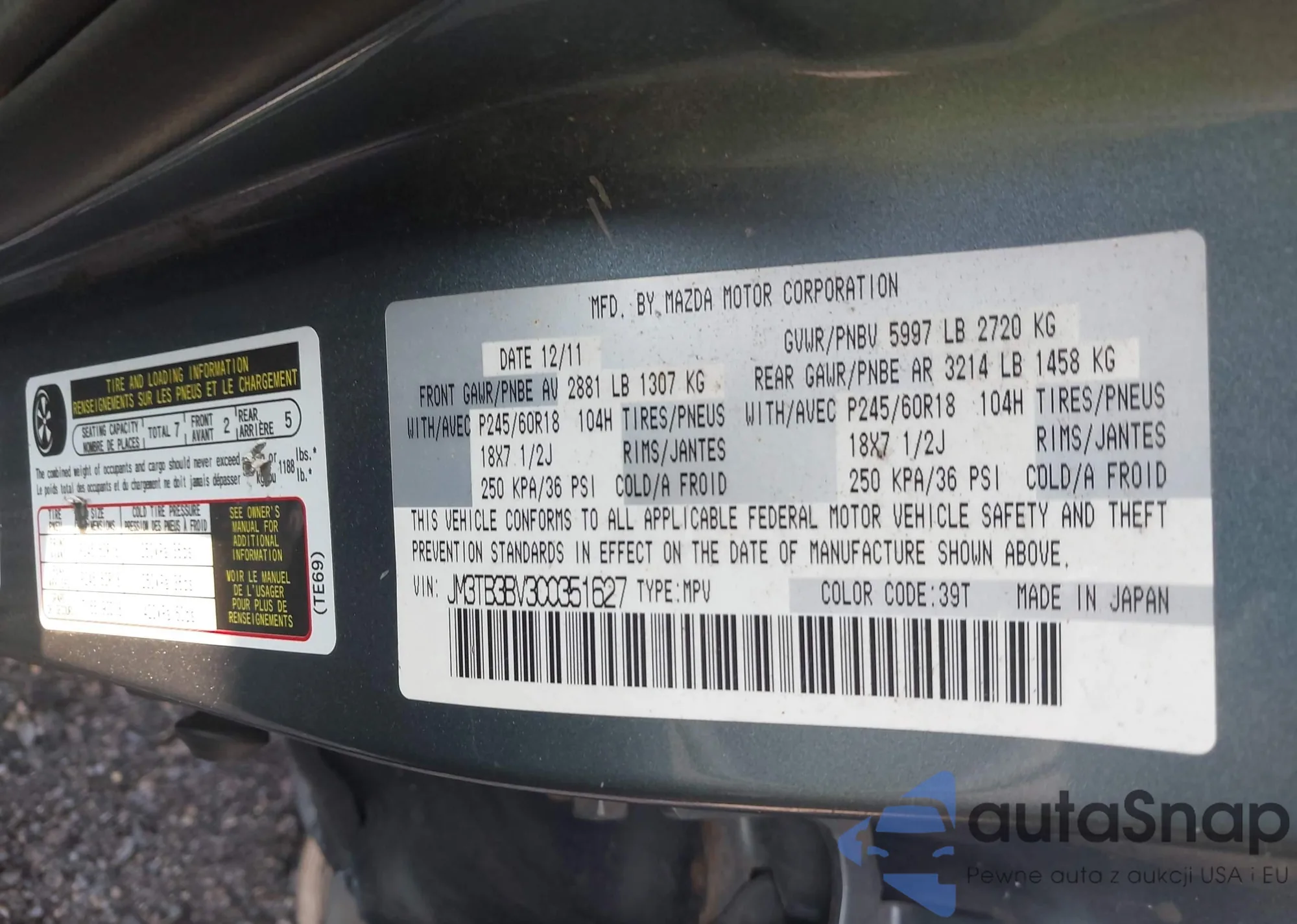 • VIN JM3TB3BV3C0351627