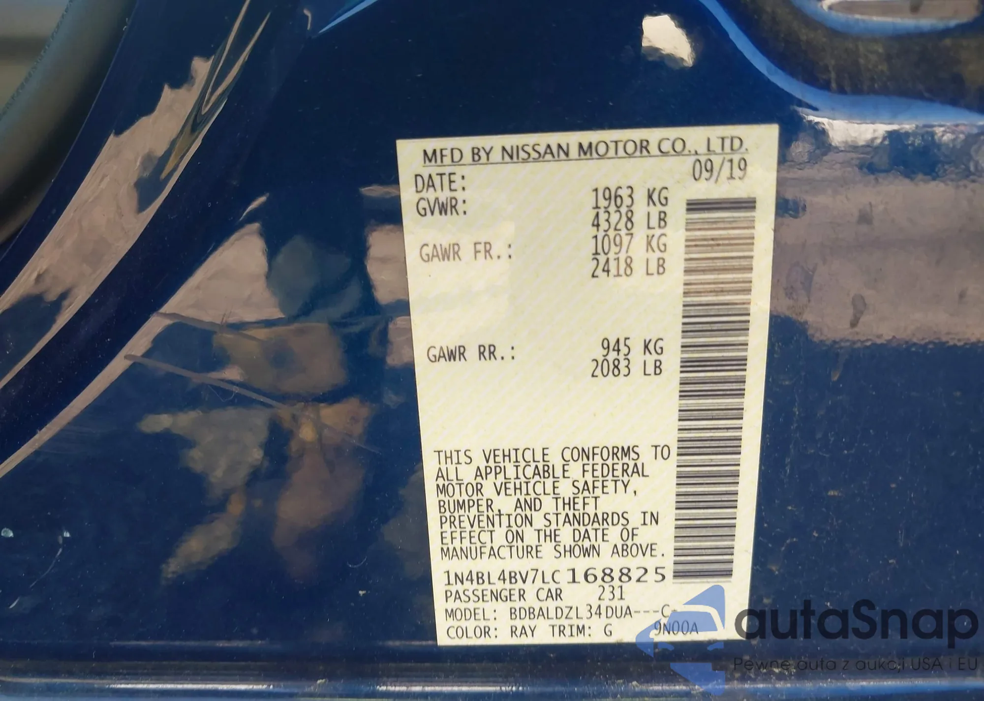 LOT: 42579678 VIN: 1N4BL4BV7LC168825