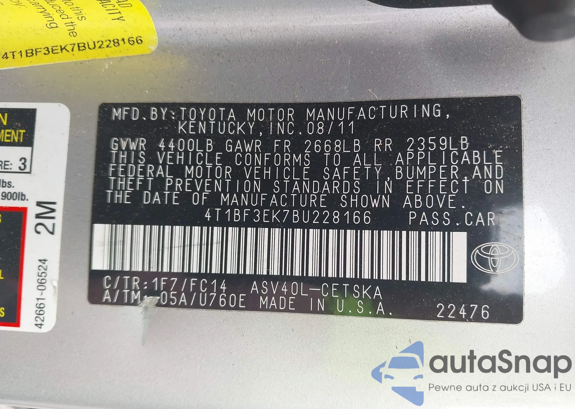 • VIN 4T1BF3EK7BU228166