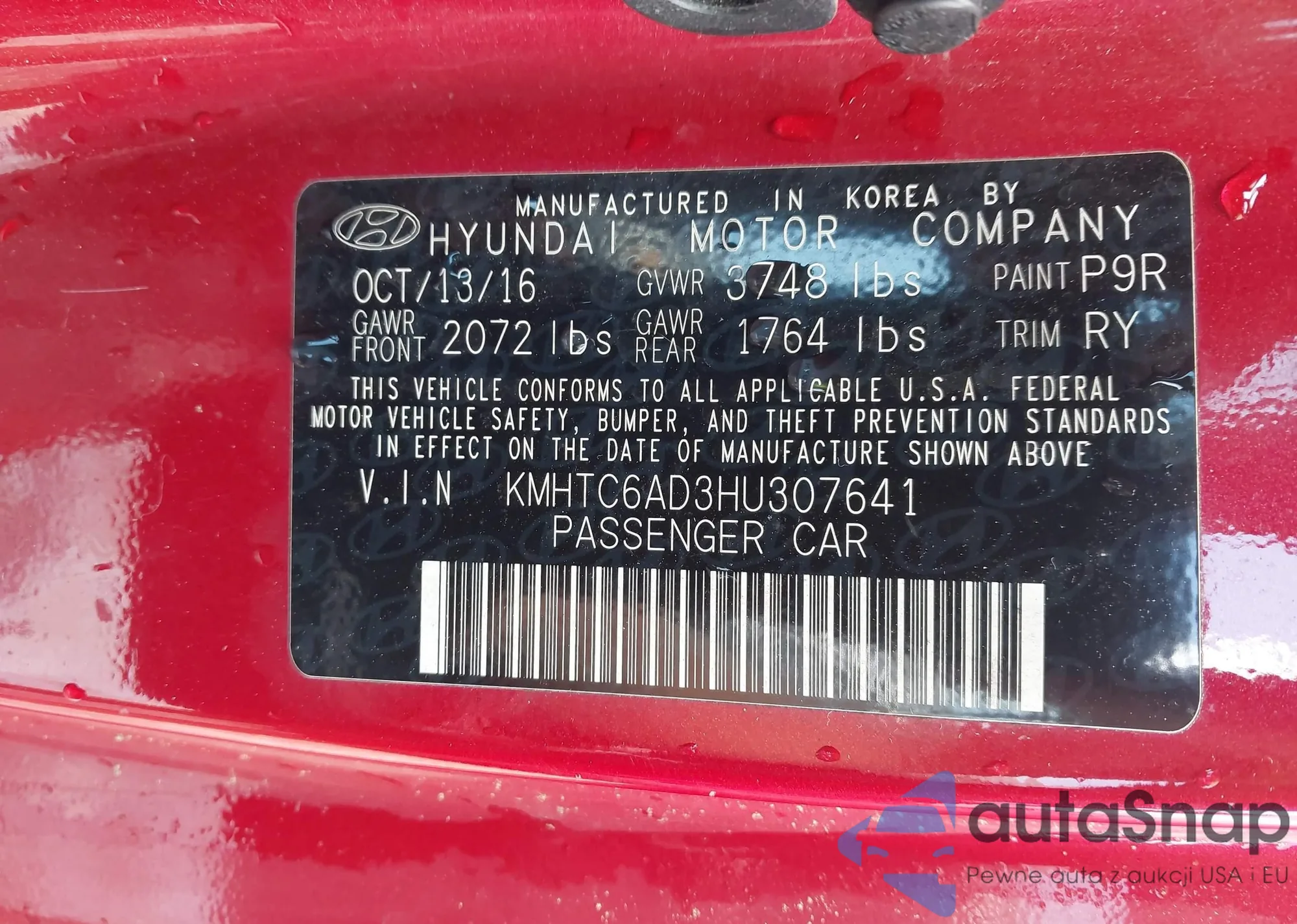 2017 Hyundai Veloster из США, поврежденный, VIN KMHTC6AD3HU307641